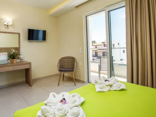 Rezortný hotel Evita Studios sa nachádza v letovisku Faliraki, približne 12 km od mesta Rhodos. Turistické centrum s nákupnými možnosťami, reštauráciami a barami je vzdialené asi 850 m, najbližší supermarket asi 550 m, a autobusová zastávka asi 800 m. Medzinárodné letisko Diagoras sa nachádza asi 17 km od hotela, mesto Lindos asi 36 km.
