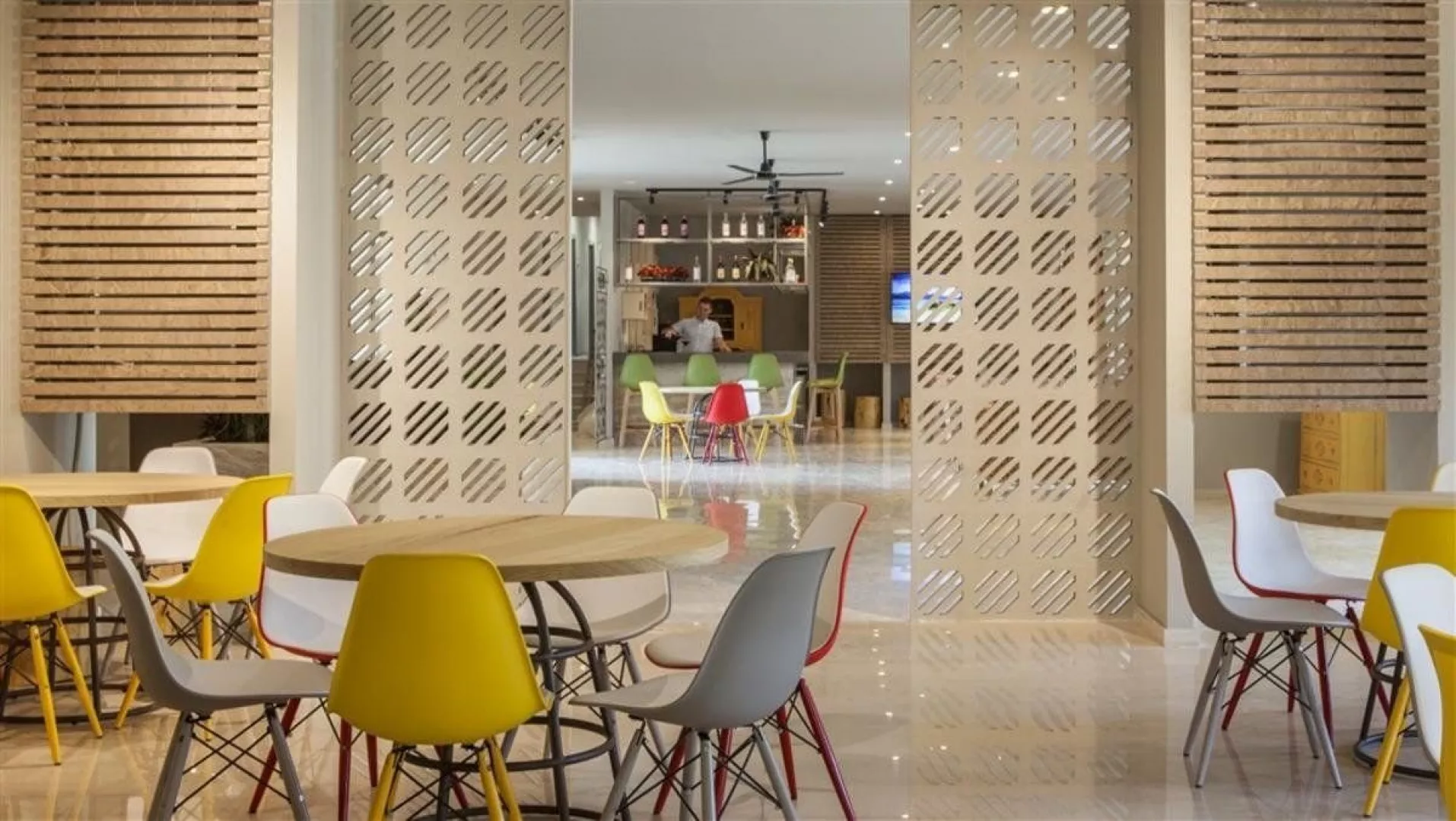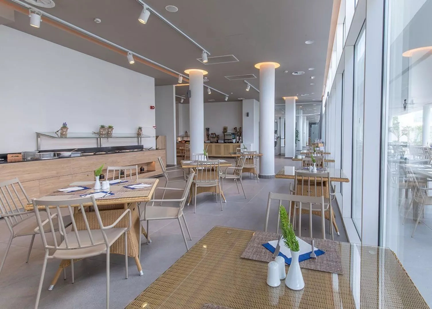 Hotel disponuje vstupnou halou, recepciou s nepretržitou prevádzkou, výťahom, reštauráciou, tromi barmi, TV miestnosťou, minimarketom a internetovým kútikom na recepcii. Wi-Fi je dostupné zdarma. K dispozícii sú aj dva bazény, pri ktorých sú slnečníky a ležadlá zdarma, pričom osušky sú za vratný depozit. Klienti majú prístup do všetkých bazénov a reštaurácií oboch častí hotela.