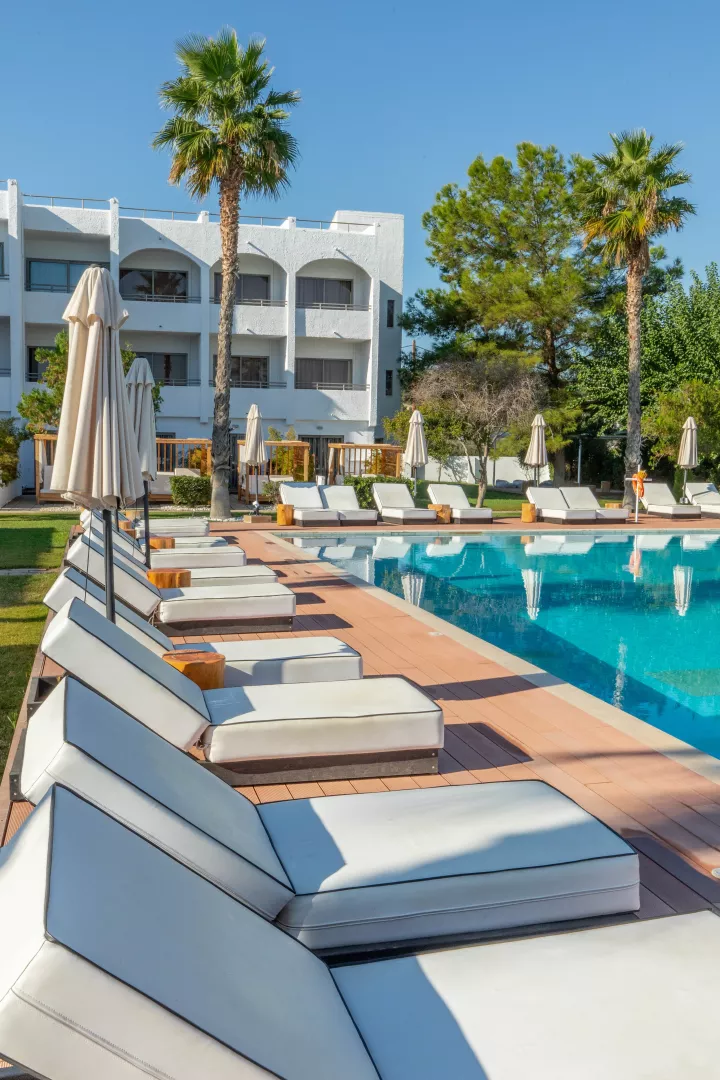 Verejná piesočnatá pláž Kathara, ktorá je známa svojím pozvoľným vstupom do mora, sa nachádza približne 850 m od hotela. Pláž je ocenená certifikátom Modrá vlajka a prístup je po miestnej komunikácii. Slnečníky a ležadlá sú k dispozícii za poplatok. Takisto sa neďaleko nachádza verejná nudistická pláž, jediná na Rhodosu, ktorá je vzdialená cca 1,2 km od hotela.