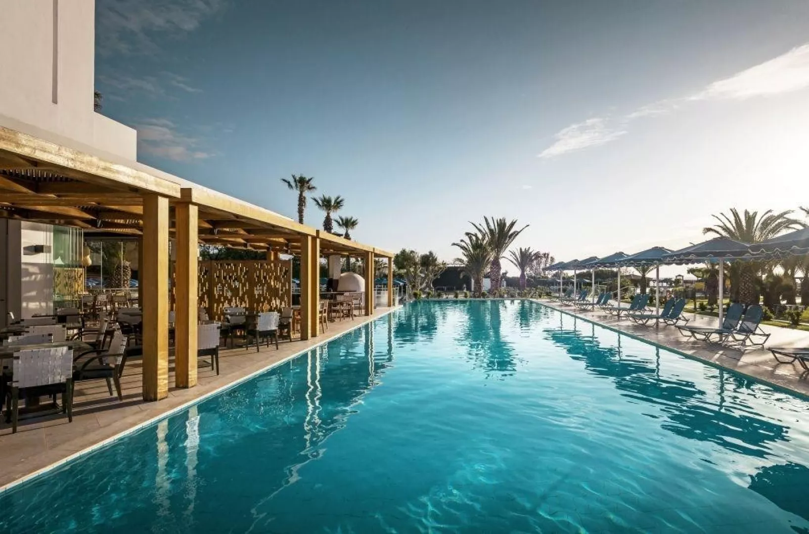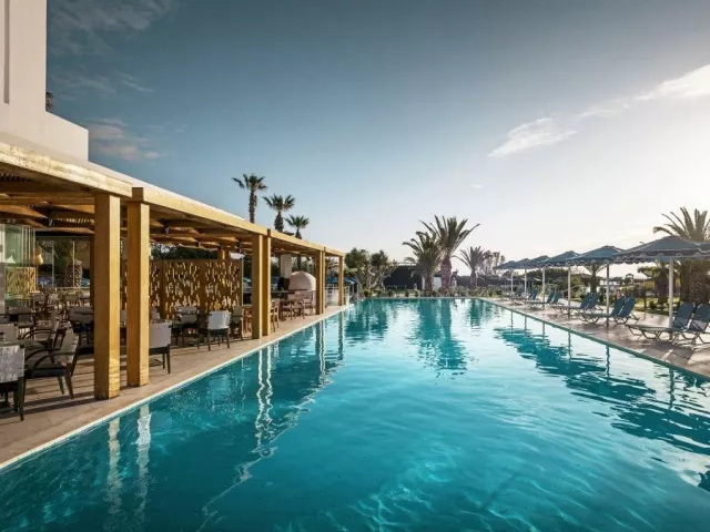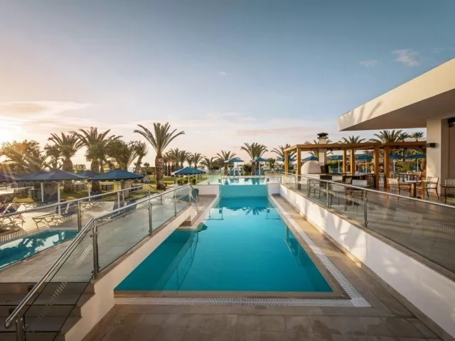 Hotel pozostáva z hlavnej budovy a priľahlej budovy. Ubytovacie zariadenie zahŕňa vstupnú halu s recepciou, hlavnú reštauráciu, 6 tematických reštaurácií (grécka, talianska, ázijská, mexická a ďalšie), 3 bary, vonkajšie parkovisko, nákupnú arkádu, wellness centrum a 3 vonkajšie bazény. K dispozícii je aj terasa na slnenie s ležadlami, slnečníkmi a plážovými osuškami zdarma.