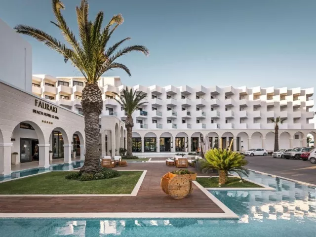 Hotel Mitsis Faliraki Beach sa nachádza priamo pri dlhej piesočnatej pláži a je situovaný v centre najväčšieho letoviska ostrova Faliraki. V blízkosti sú nákupné a zábavné možnosti, vrátane aquaparku vzdialeného približne 3 km. Hlavné mesto ostrova je vzdialené cca 13 km a letisko (RHO) je približne 17 km od hotela.