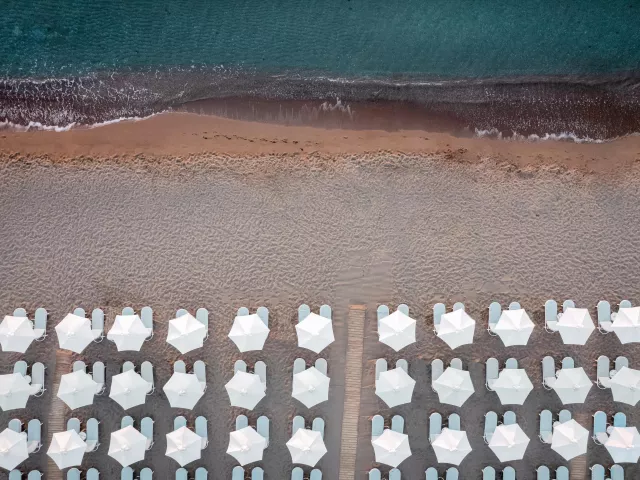 Pláž pri hoteli je piesočnatá s pozvoľným vstupom do mora a ponúka ležadlá, slnečníky a plážové osušky zdarma.