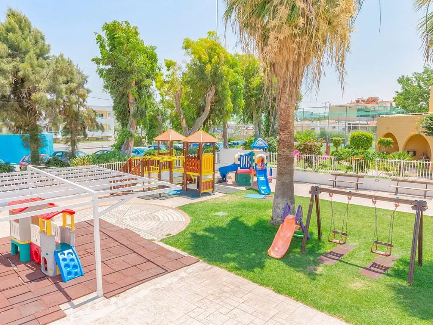 V hlavnej budove sa nachádza vstupná hala s recepciou, minimarket, reštaurácia a trezor (za poplatok). V záhrade sú k dispozícii menšie 2–3 poschodové budovy, bary, bazény, terasa s ležadlami a slnečníkmi, ktoré sú k dispozícii zadarmo.
