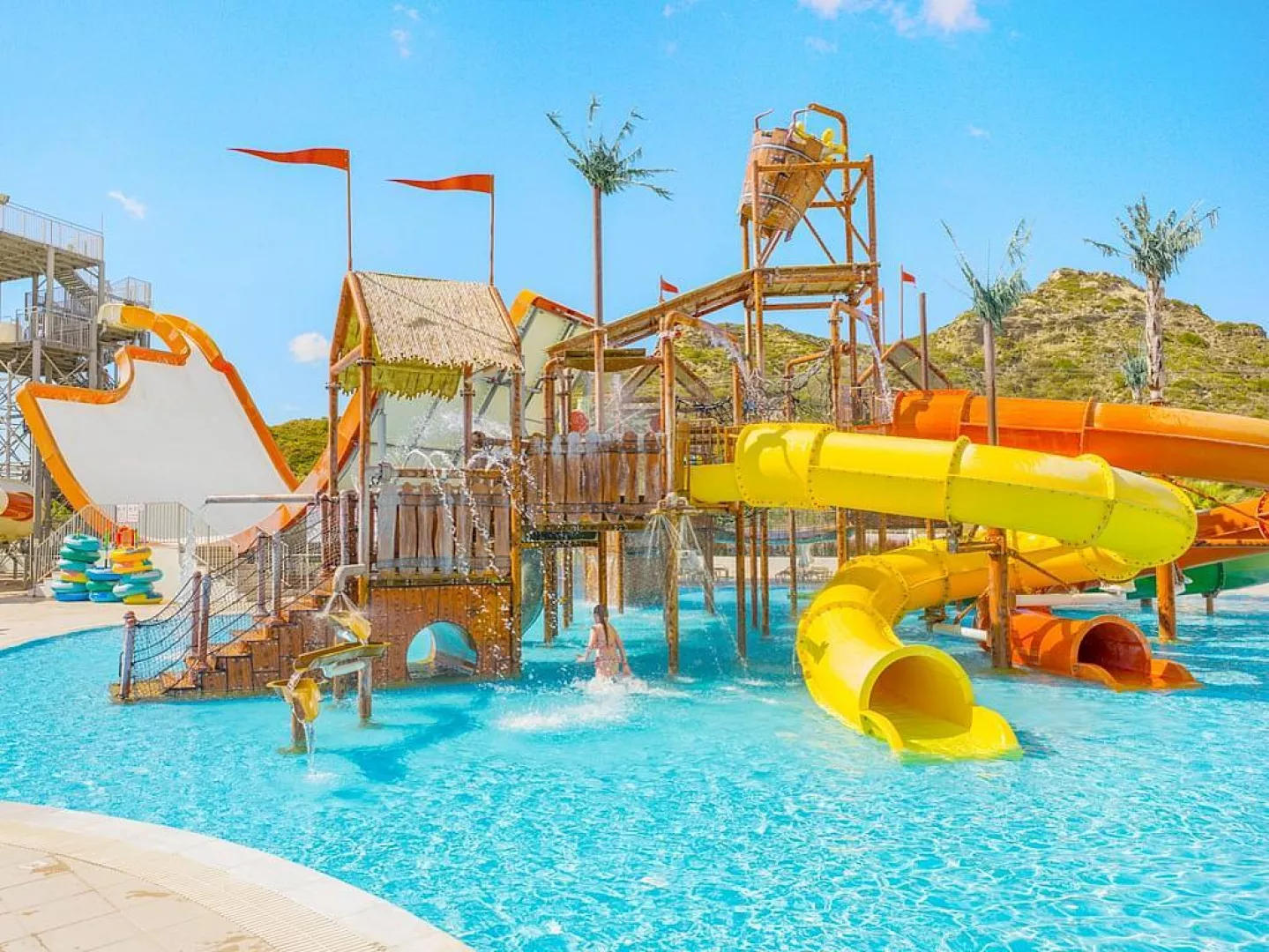 Pre deti je k dispozícii detský bazén, detské ihrisko a na vyžiadanie je možné zabezpečiť detskú postieľku bez poplatku. Hotel ponúka tiež aquapark, ktorý je otvorený od 10:00 do 18:00 hod., v závislosti od počasia, a zahrňuje lenivú rieku a tobogány prispôsobené pre rôzne vekové skupiny. V rámci aquaparku je bar s nealkoholickými nápojmi v cene all inclusive a sú tu organizované animačné programy.