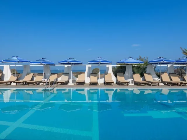 Piesočnato-okruhliaková pláž Theologos sa nachádza asi 220 m od hotela. Ležadlá a slnečníky sú k dispozícii za poplatok od miestnych poskytovateľov služieb.