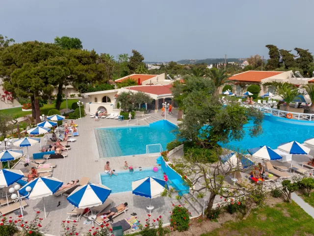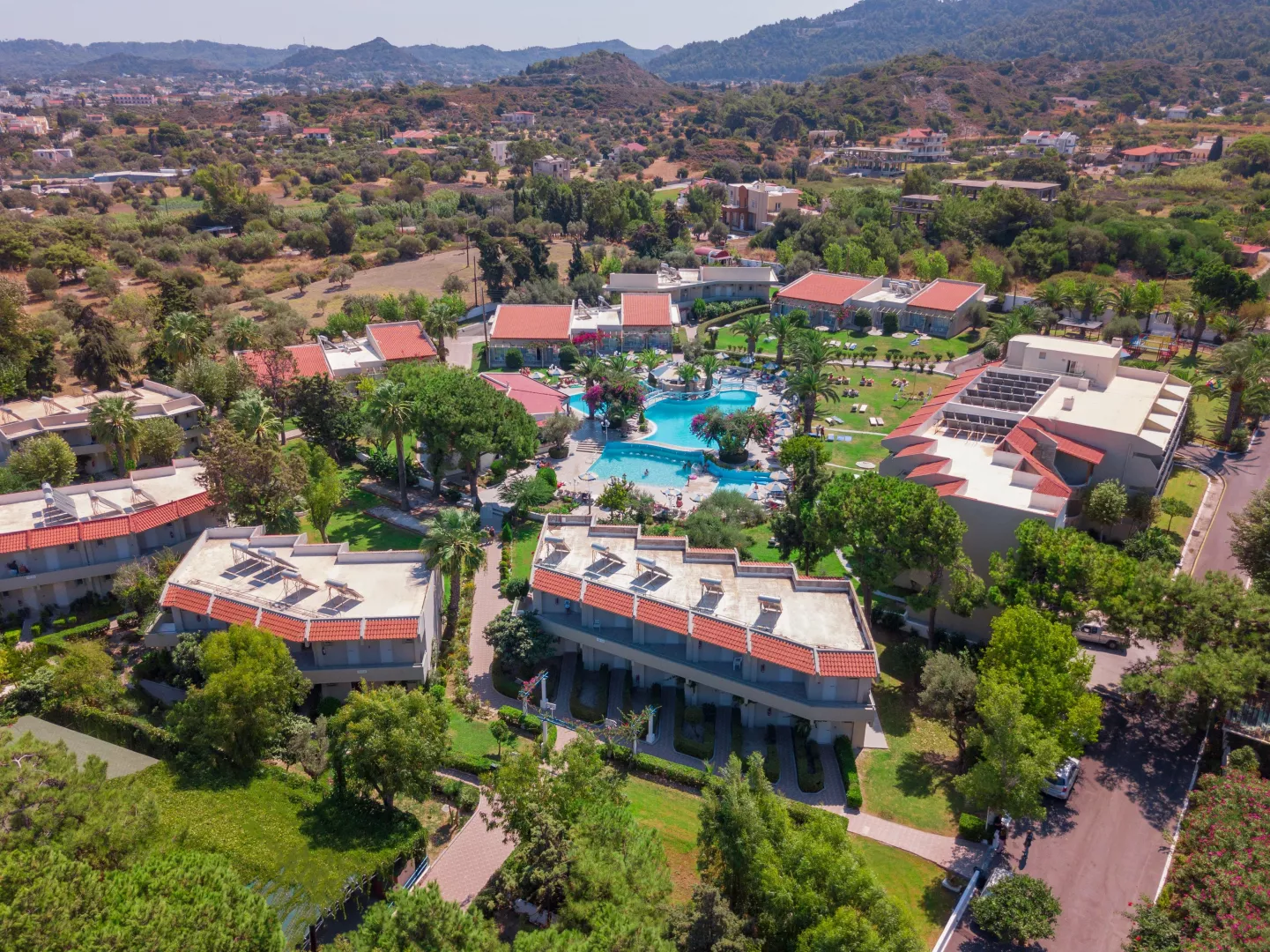 Hotel Filerimos Village sa nachádza v rozľahlej subtropickej záhrade plnej kvetov a paliem, na úpätí hôr Filerimos, medzi letoviskami Ialyssos a Kremasti. Centrum Ialyssosu je vzdialené približne 1,5 km, zatiaľ čo hlavné mesto Rhodos je 8 km ďaleko. Miestna autobusová doprava je dostupná priamo pri hoteli. Najbližšie reštaurácie a bary sú vzdialené asi 350 m.