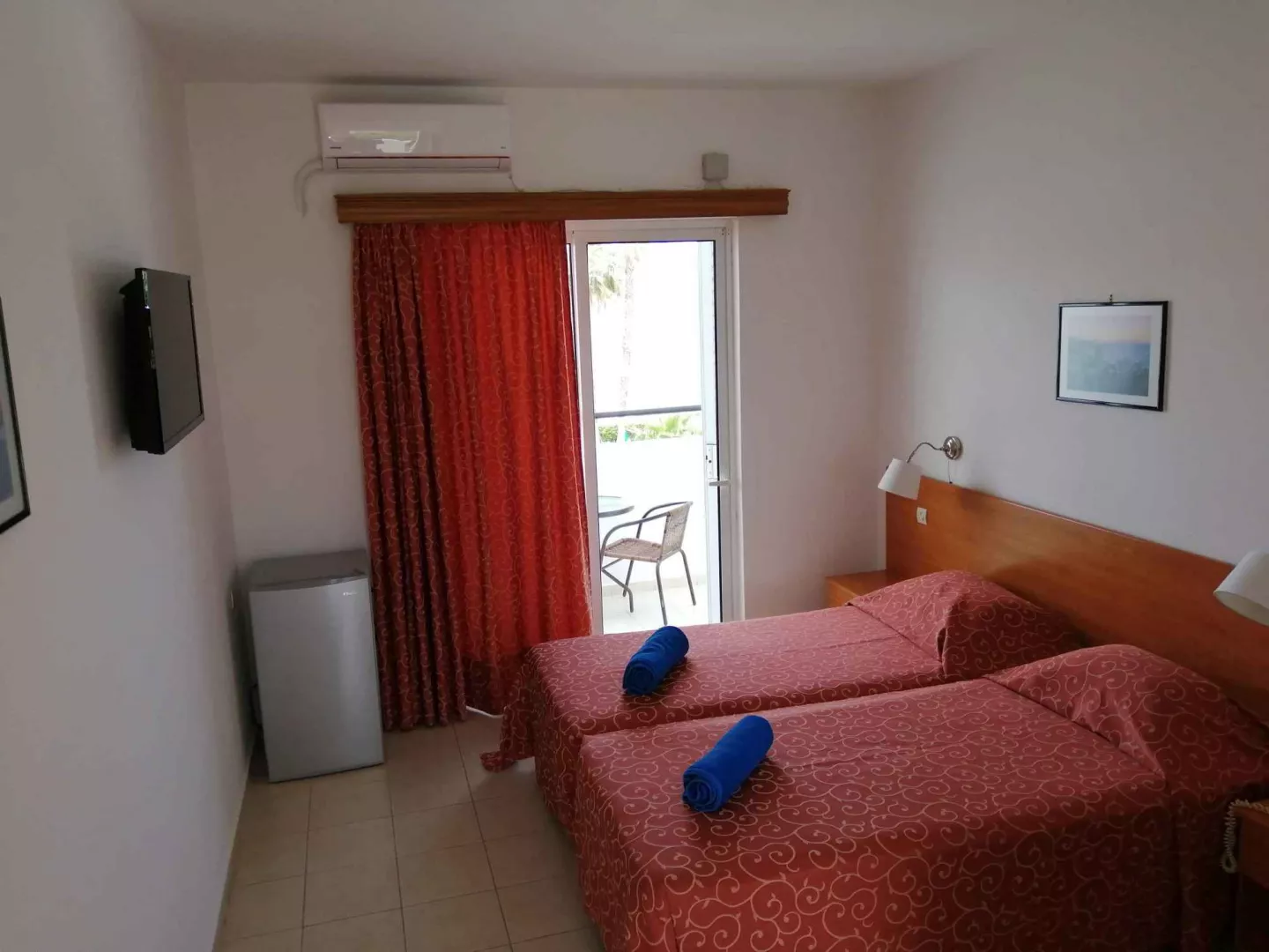 Dvojlôžkové izby sú vybavené kúpeľňou/WC, klimatizáciou, TV/sat., telefónom, mini chladničkou a balkónom alebo terasou. Izby na prízemí ponúkajú rovnaké vybavenie s možnosťou výhľadu na more.