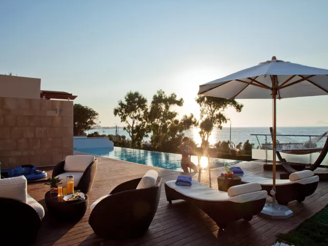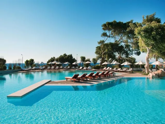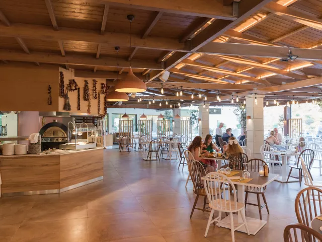 V hoteli sú k dispozícii raňajky formou bufetu, polpenzia a luxusná forma stravovania all inclusive. Tri à la carte reštaurácie ponúkajú grécke, talianske a stredomorské jedlá. All inclusive poskytuje aj občerstvenie a miestne nápoje v určených časoch.