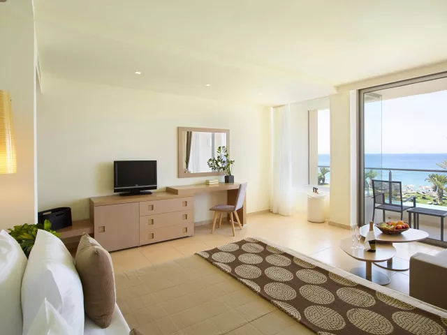 V hoteli sú rôzne typy izieb, vrátane dvojlôžkových izbách s výhľadom do krajiny, záhrady alebo na more. Izby sú vybavené kúpeľňou/WC (so sušičom vlasov), individuálnou klimatizáciou, TV/sat., minibarom (za poplatok), trezorom, setom na prípravu kávy a čaju a balkónom. V ponuke sú aj deluxe izby s vírivkou, ako aj súkromné grand suity s prístupom k vlastnému bazénu alebo s výhľadom na pláž.