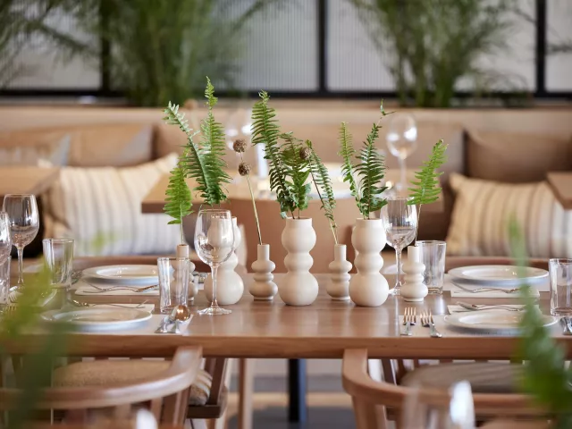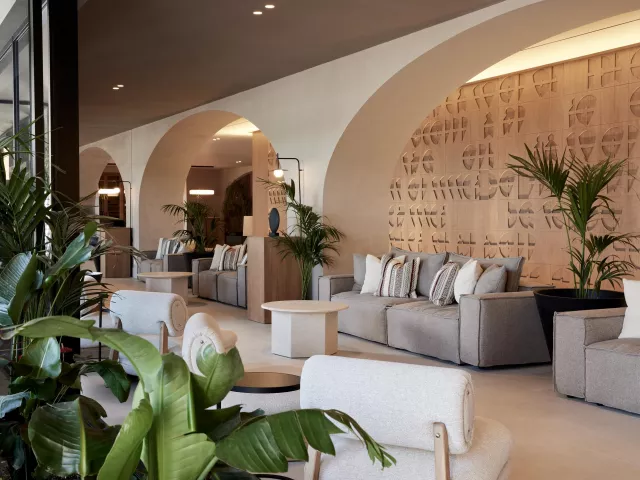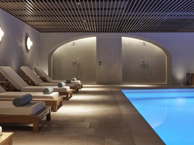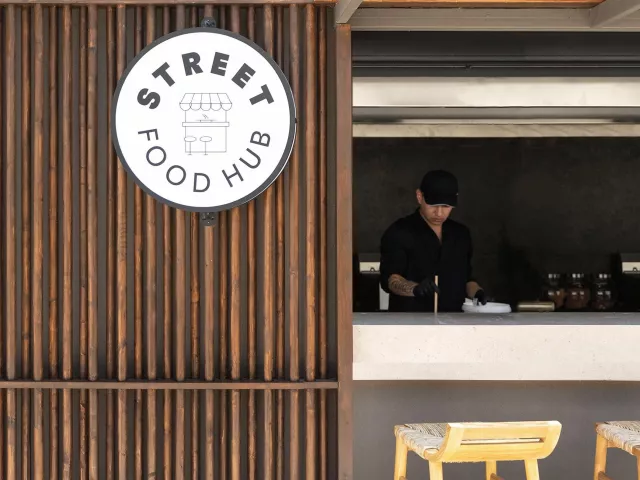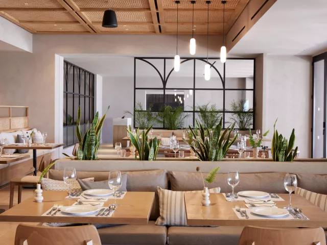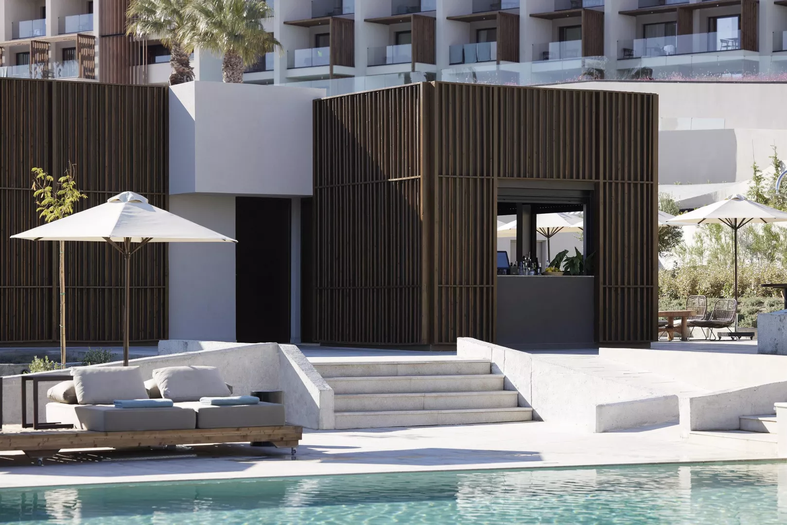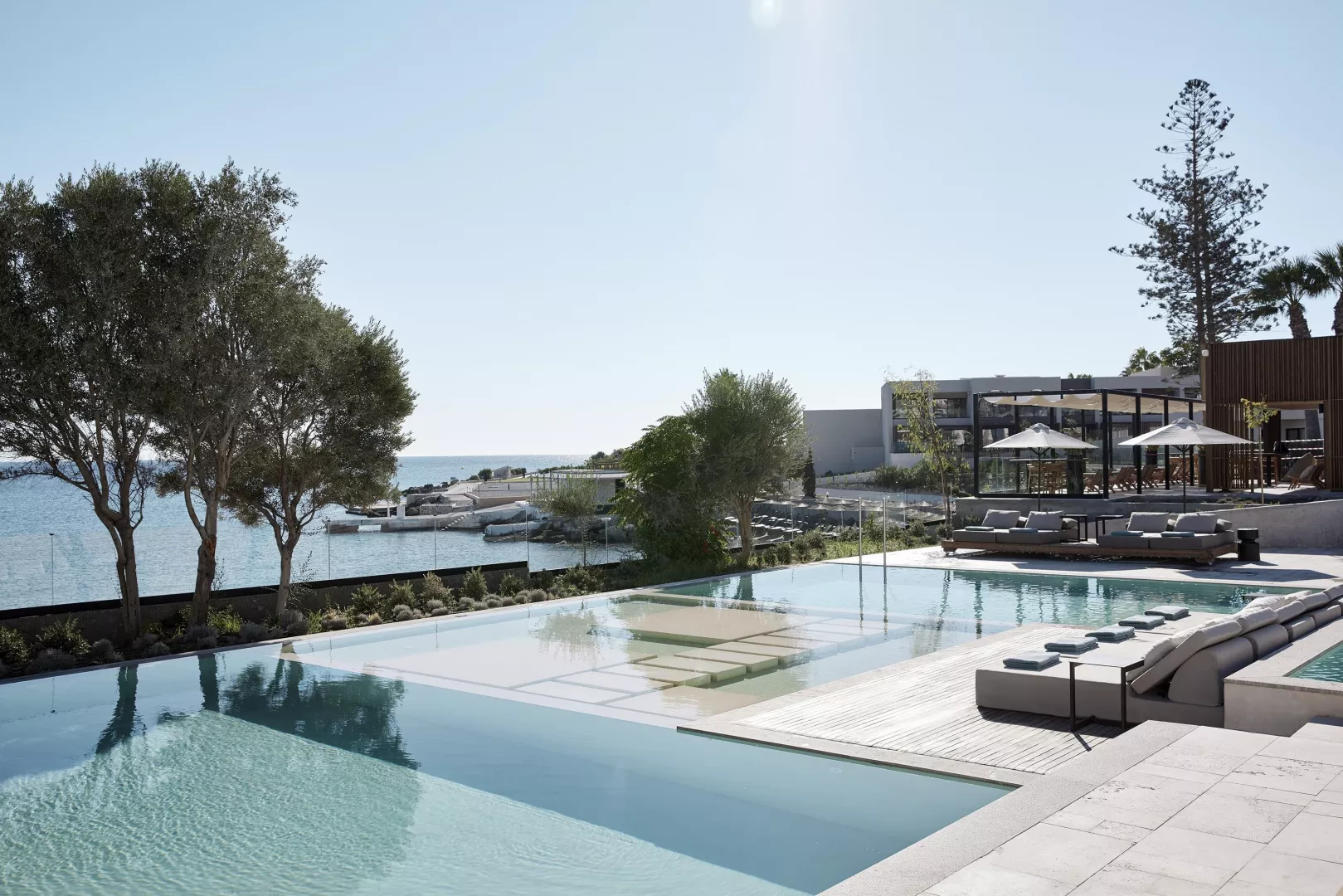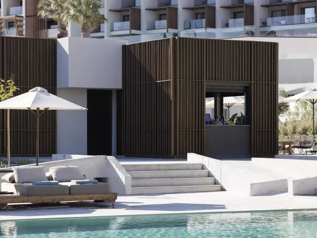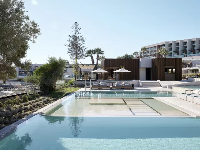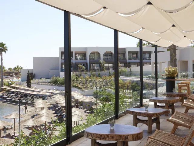 Vstupná hala s recepciou, výťah, 15 bazénov, á la carte reštaurácia (grécka, streed food, stredomorská, ázijská - všetko za poplatok), niekoľko barov v rezorte, bar na pláži, nákupná arkáda, konferenčná miestnosť, terasa na slnenie s ležadlami a slnečníkmi zadarmo.
