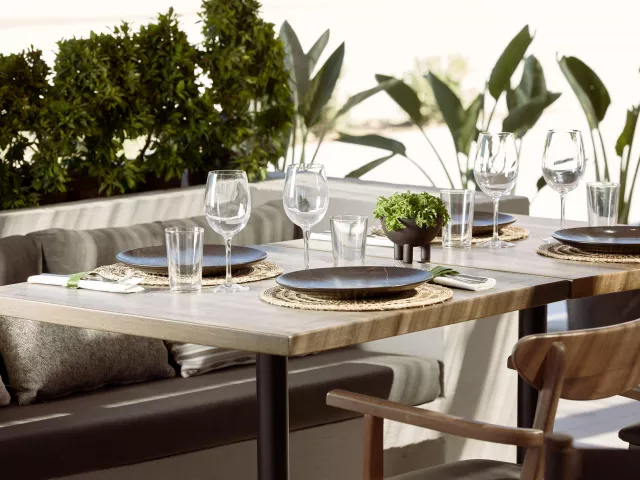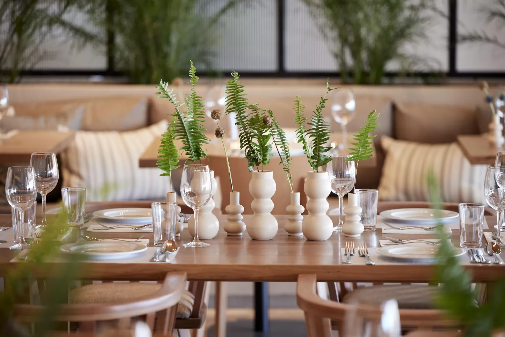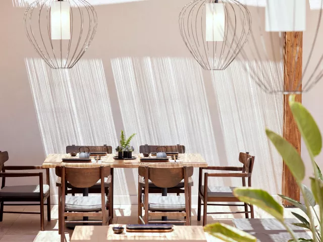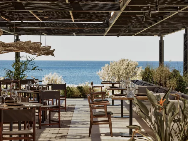 Raňajky (formou bufetu), polpenzia (raňajky a večere formou bufetu). Á la carte reštaurácia (grécka, streed food, stredomorská, ázijská - extra platená (nie je v cene polpenzie).