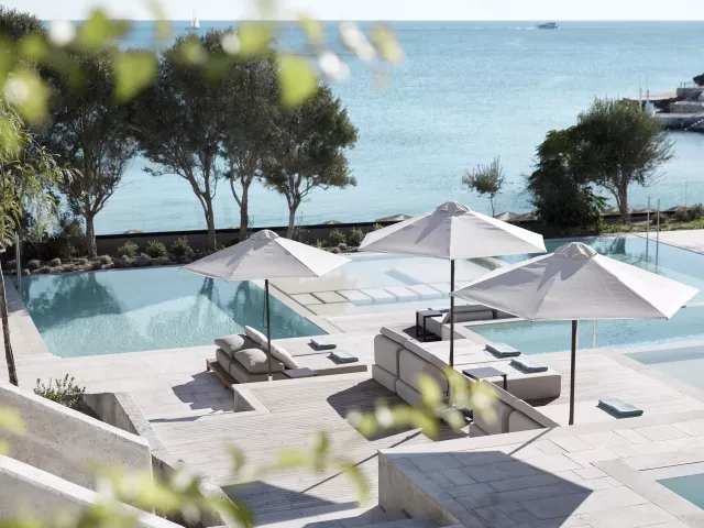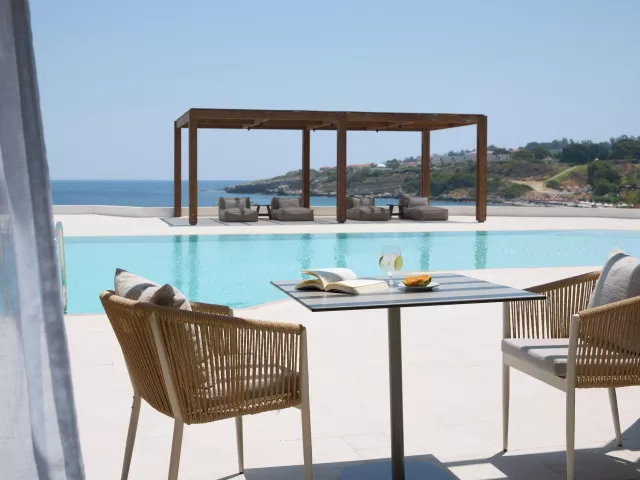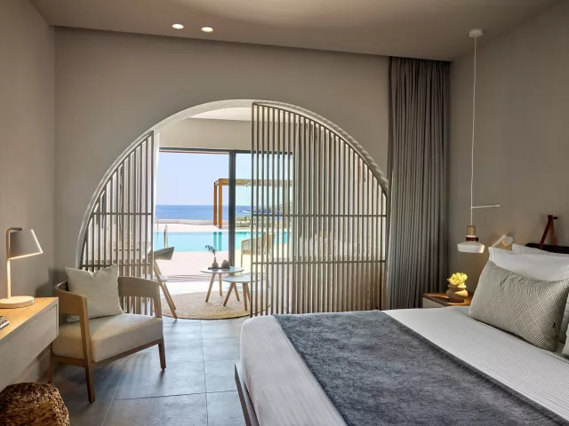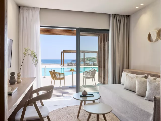 Dvojlôžková izba, Deluxe, Superior : kúpeľňa/WC (sušič vlasov), TV/ sat., písací stôl, klimatizácia, minichladnička (minibar za poplatok), trezor, balkón alebo terasa. Dvojlôžková izba, Deluxe, Superior, Výhľad na more Junior Suita: priestrannejšia, obývacia izba a opticky oddelená spálňa, balkón alebo terasa Junior Suita, Výhľad na bazén, Zdieľaný bazén: obývačka a opticky oddelená spálňa, terasa Junior Suita, Výhľad na more, Zdieľaný bazén: obývačka a opticky oddelená spálňa, terasa