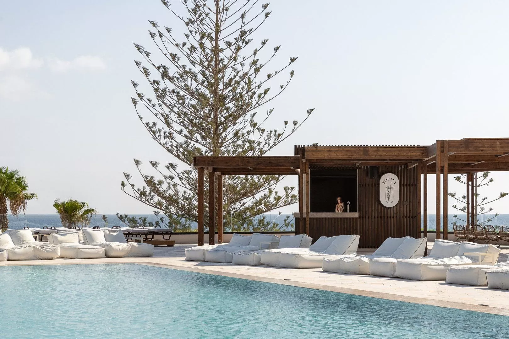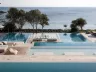 Pláž je piesočnato-kamienková s ležadlami a slnečníkmi (zadarmo). Plážové osušky sú k dispozícii za depozit a bar na pláži ponúka osvieženie.