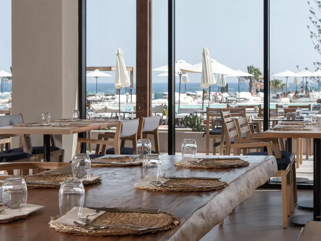 hlavná reštaurácia Lopia • a la carte grécka plážová reštaurácia Tsouka • a la carte talianska reštaurácia Matsi • a la carte latinsko-americká reštaurácia Laerma • Street food hub (nápoje, snacky, zmrzlina, palacinky)
