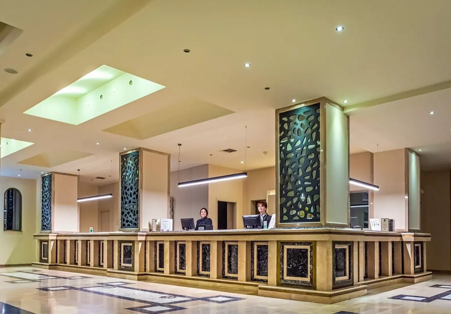 Hotel ponúka vstupnú halu s recepciou, TV miestnosť, zmenáreň a internetový kútik (za poplatok). Stravovanie zaisťuje hlavná reštaurácia a la carte taverna, lobby bar a snack bar. K dispozícii je vonkajší bazén so slnečníkmi a ležadlami (zadarmo) a detský bazén spolu s detským ihriskom.