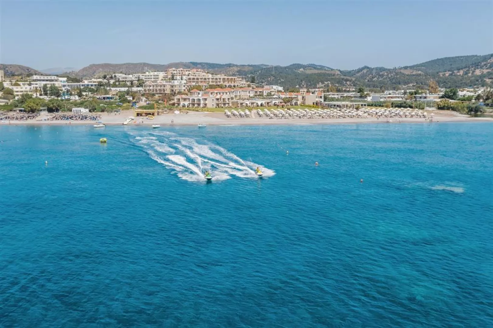 Hotel sa nachádza priamo na kamienkovo-piesočnatej pláži, ktorá ponúka pozvoľný vstup do mora. K dispozícii sú aj slnečníky a ležadlá zdarma, ako aj plážový bar a vodné športy za poplatok.