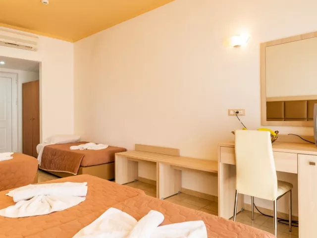 Štandardné dvojlôžkové izby s možnosťou prístelky sú vybavené vlastným sociálnym zariadením (WC, kúpeľňa, fén), klimatizáciou (od 1.7. do 31.8. zdarma, pred a po období za poplatok), chladničkou, telefónom a TV. Izby majú aj balkón alebo terasu. Na vyžiadanie je k dispozícii detská postieľka zdarma. K dispozícii sú aj rodinné izby za príplatok.