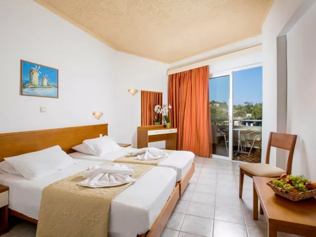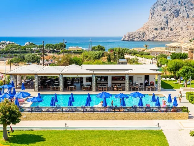 Pohodlný hotelový komplex s rodinnou atmosférou sa nachádza v krásnej záhrade v kľudnej časti letoviska Kolymbia. V okolí nájdete množstvo reštaurácií, barov a nákupných možností. Najbližší obchod je vzdialený približne 300 m od hotela. Autobusová zastávka je priamo pri hoteli, z ktorej sú spoje do hlavného mesta Rhodos. Letisko je vzdialené približne 31 km.