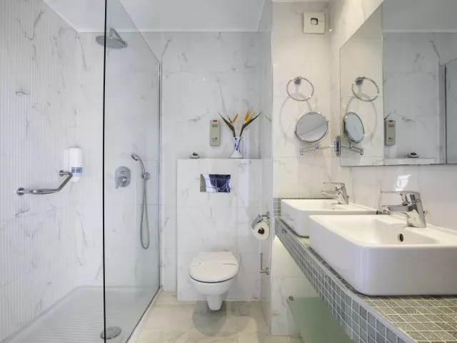 Izby sú vybavené klimatizáciou, TV so satelitným príjmom, telefónom a Wi-Fi (zadarmo). Každá izba má vlastné sociálne zariadenie (kúpeľňa, sušič vlasov, WC) a balkón alebo terasu s výhľadom do záhrady alebo na more. K dispozícii sú aj izby so zdieľaným bazénom a priestrannejšie junior suit, ktoré majú taktiež terasu na slnenie s ležadlami.