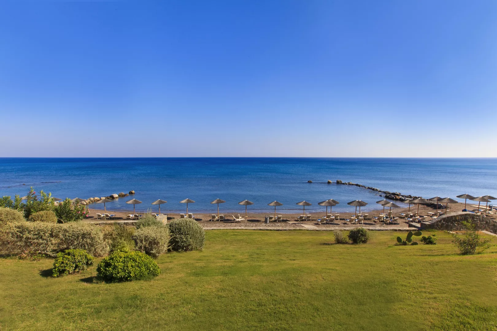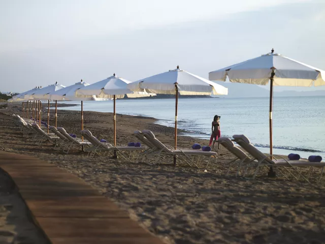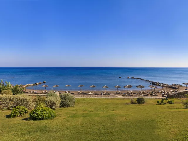 Hotel sa nachádza priamo pri krásnej piesočnato-okruhliakovej pláži, kde sú k dispozícii sprchy a WC. Ležadlá a slnečníky sú zdarma.