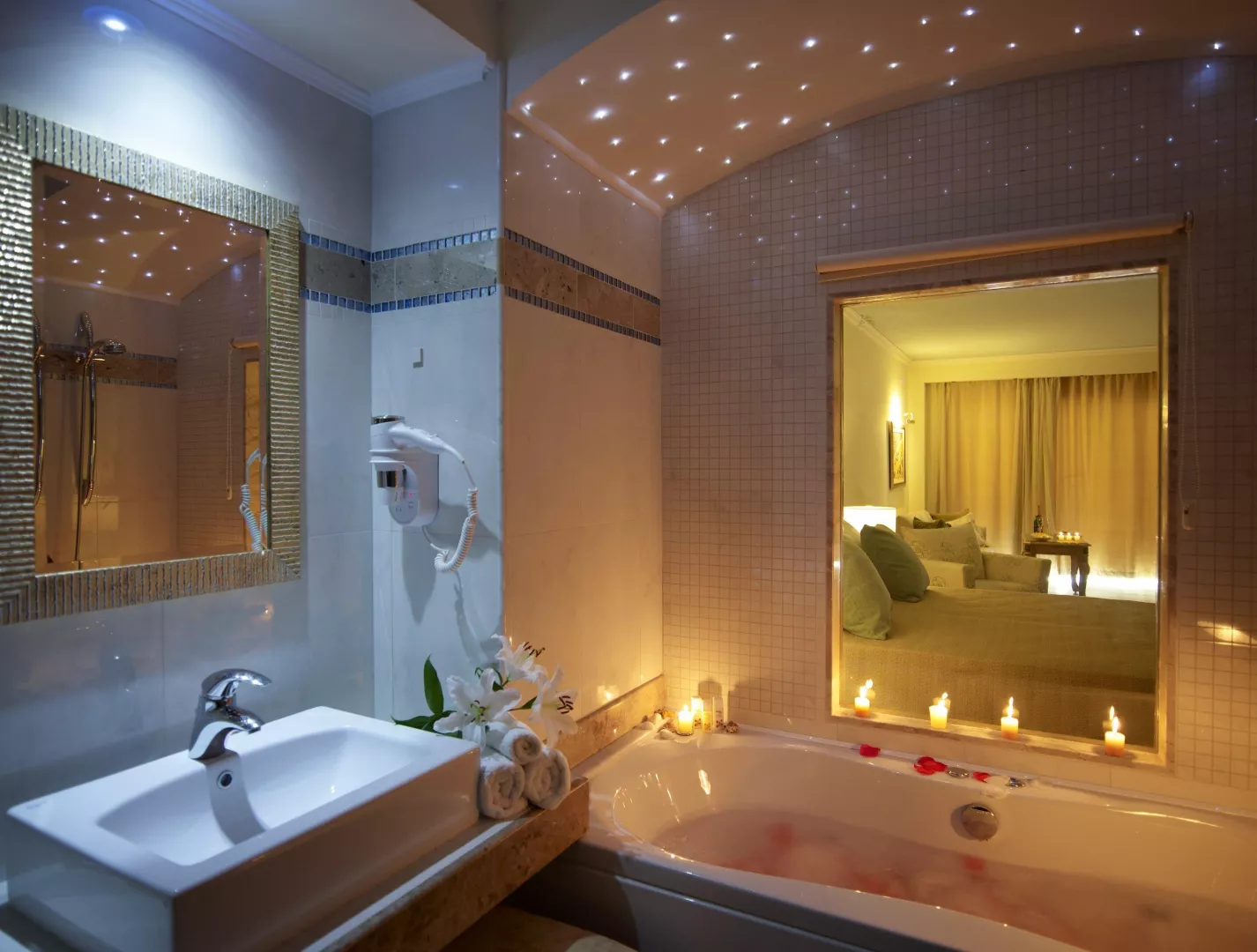 Izby sú rôznych druhov, vrátane dvojlôžkových izieb, rodinných suít a bungalovov, s privátnymi bazénmi. Základné vybavenie izieb obsahuje: