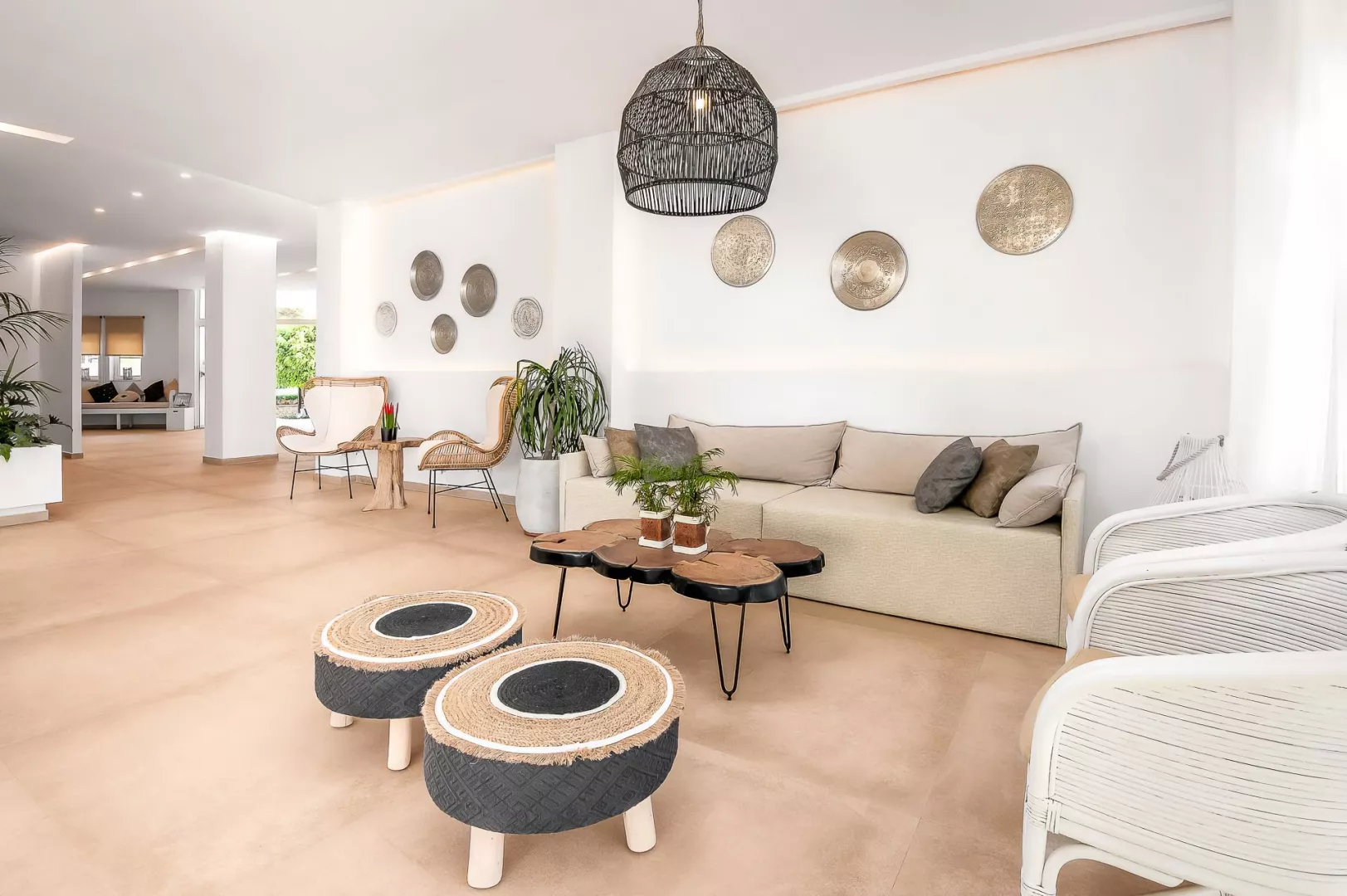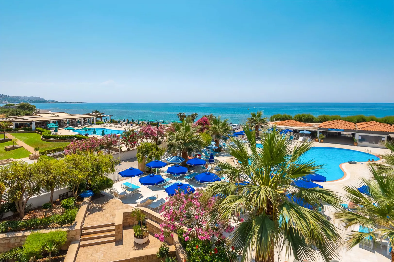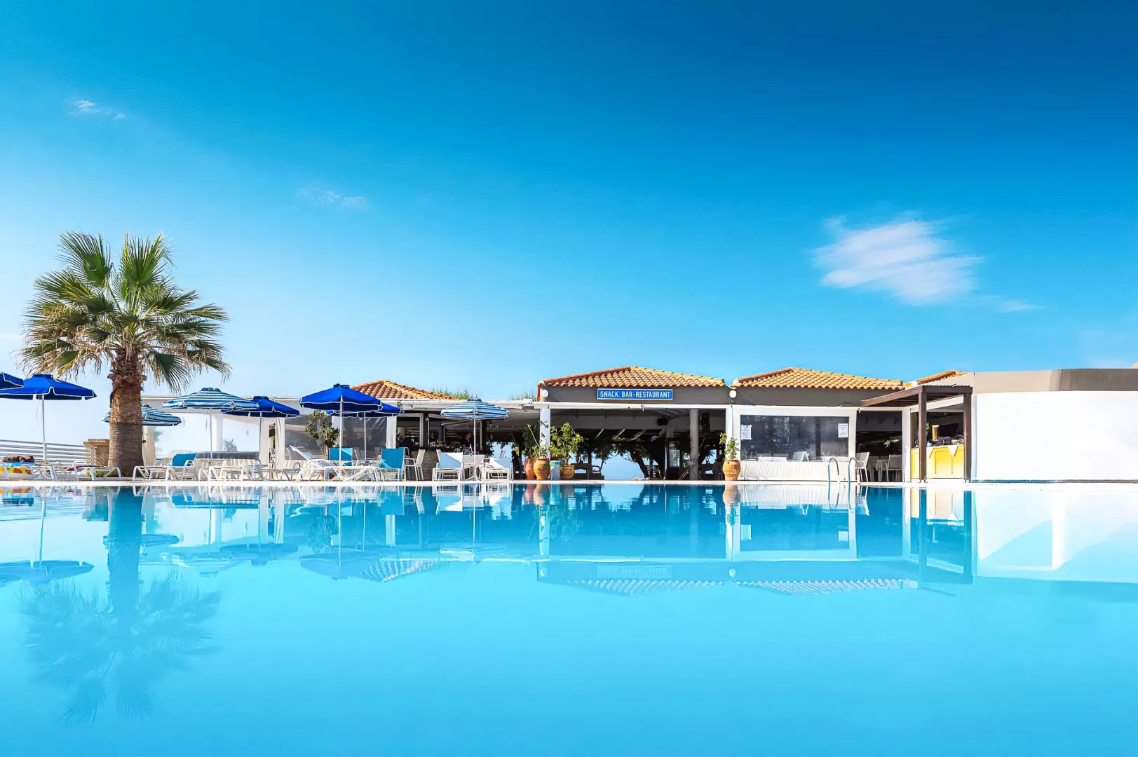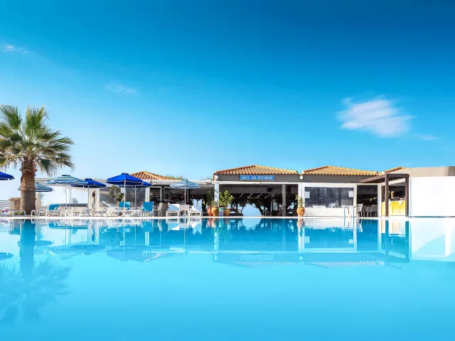 Vstupná hala s recepciou, reštaurácia a bar pri bazéne aj na pláži. V záhrade bazén a menší detský bazén, slnečníky a plážové osušky zadarmo.