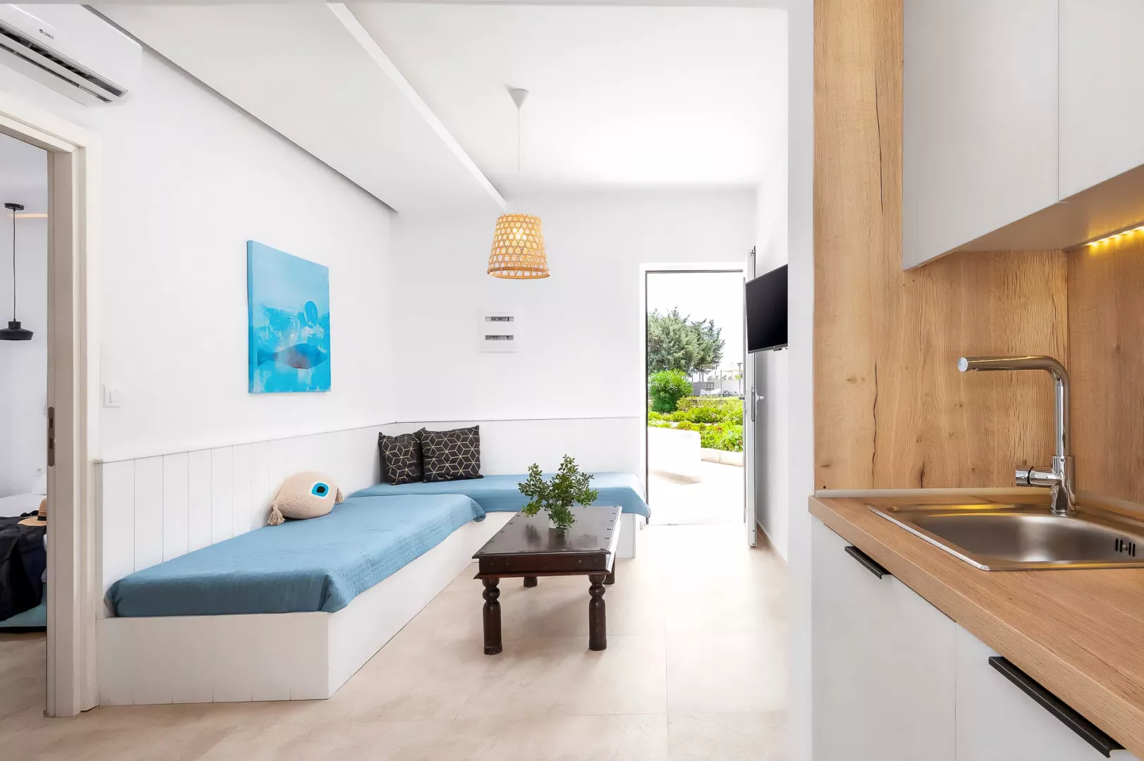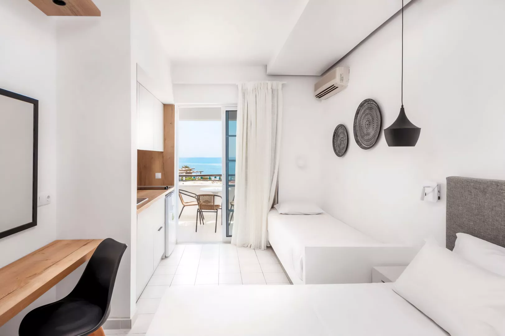 Dvojlôžková izba: kúpeľňa/WC (sušič vlasov), TV/sat., klimatizácia, minichladnička, rýchlovarná kanvica, trezor, balkón alebo terasa. Rodinná izba: 1 priestrannejšia miestnosť, iba opiticky rozdelená na 2 časti.