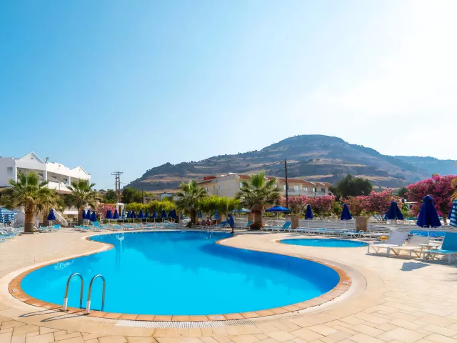 Moderný renovovaný hotel (2018/2019) v južnej časti Rhodosu, 2,5 km od centier tradičného gréckeho letoviska Lardos s tavernami a obchodmi. Cca 300 m od hotela taverny a bary. Autobusová zastávka cca 250m. Hlavné mesto Rhodos cca 50 km.