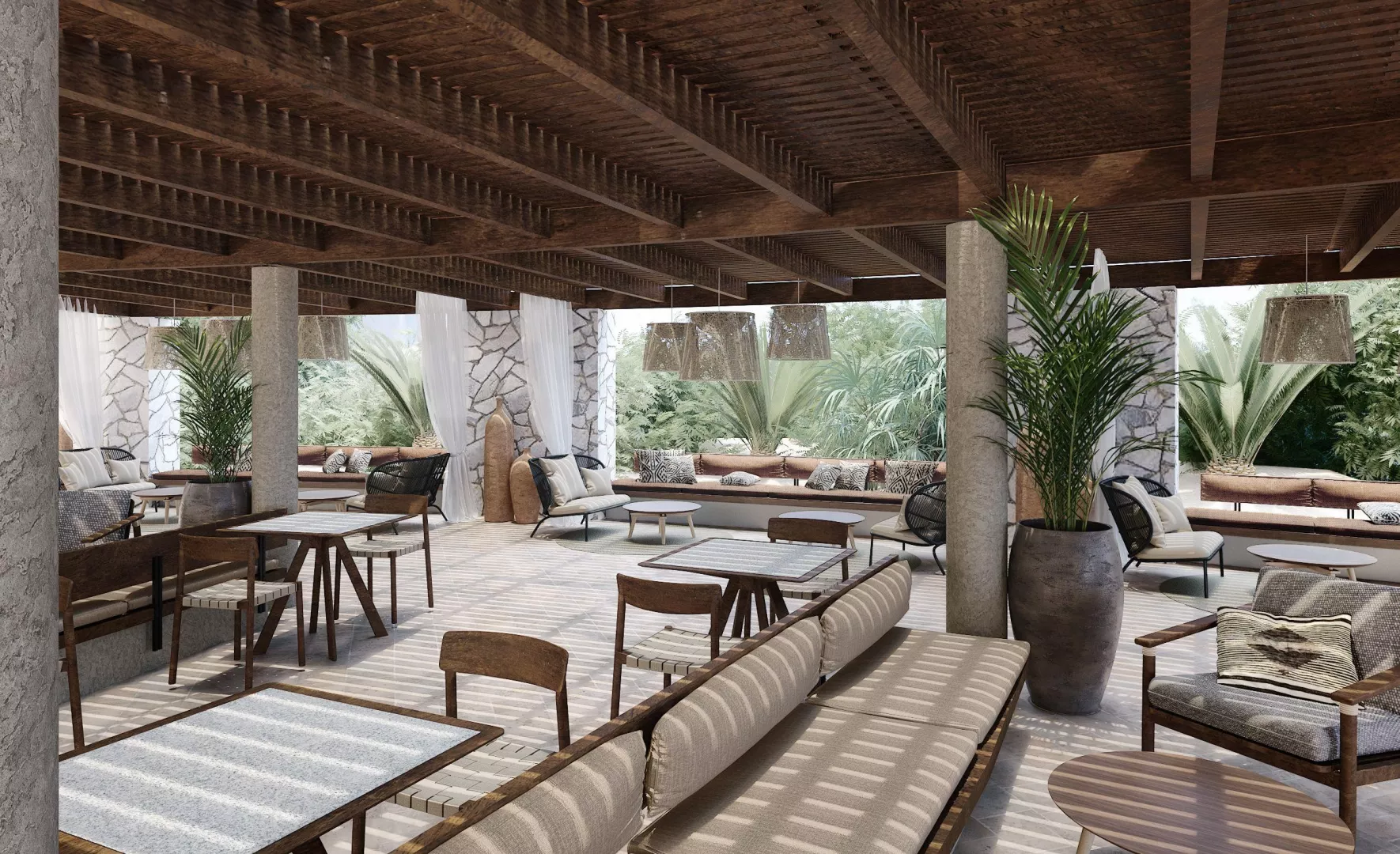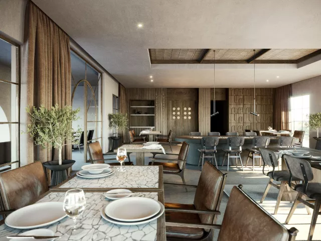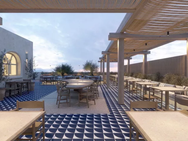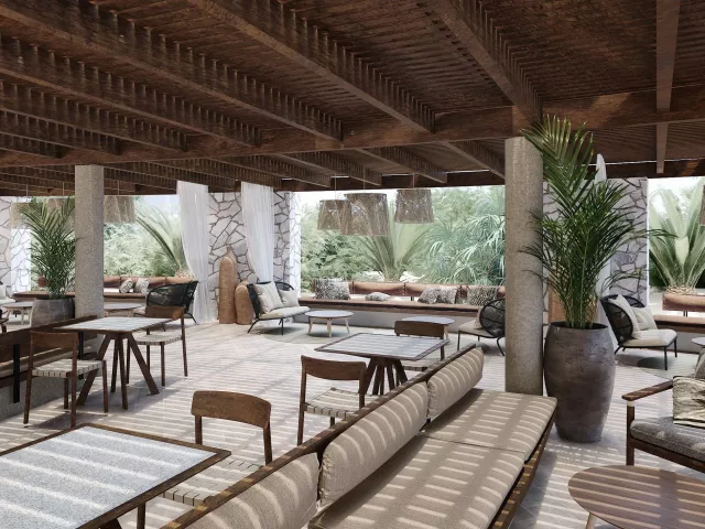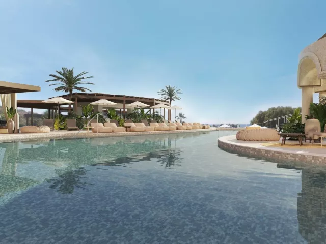 Hotel ponúka modernú vstupnú halu s recepciou, spoločenskú miestnosť s TV, hlavné reštaurácie, à la carte reštaurácie (grécka, talianska, ázijská), cukráreň a bar pri bazéne. K dispozícii sú aj dve veľké bazény, detské bazény, terasa na opaľovanie so slnečníkmi a ležadlami zadarmo a konferenčné centrum.
