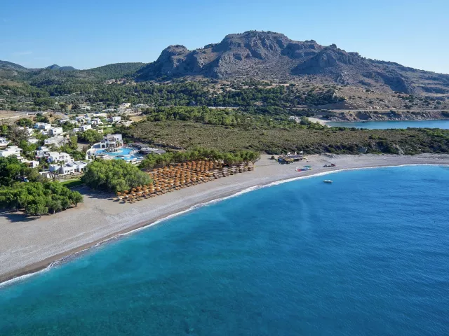Po totálnej kompletnej luxusnej rekonštrukcii sa hotel nachádza na východnom pobreží ostrova približne 3 km od strediska Kiotari. Historické mestečko Lindos s akropolou je vzdialené len 10 minút jazdy. Hlavné mesto ostrova Rhodos sa nachádza cca 55 km od hotela, zatiaľ čo letisko Rhodos je vzdialené 57 km.