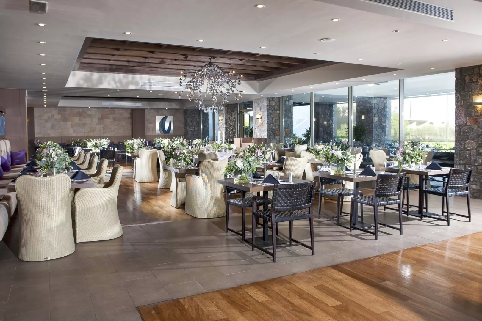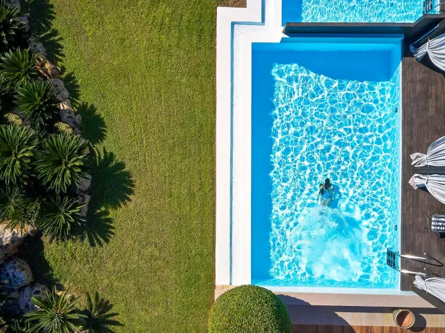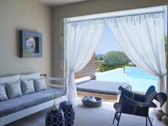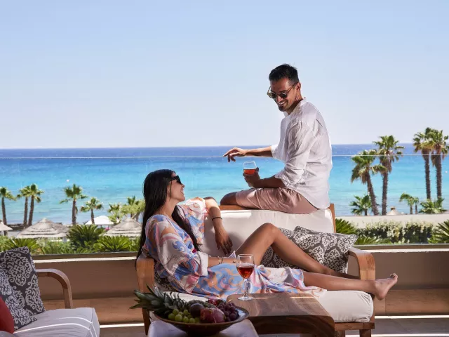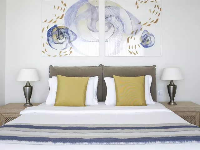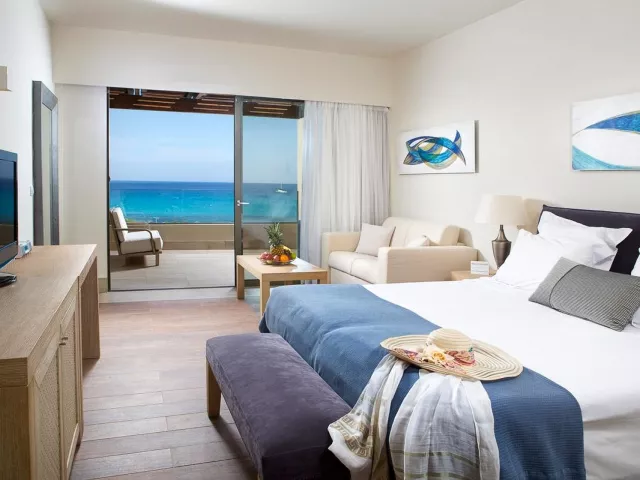 Dvojlôžkové izby sú vybavené kúpeľňou/WC (so sušičom vlasov, županmi a papučami), individuálnou klimatizáciou, pohovkou, trezorom, TV/sat. a balkónom alebo terasou. K dispozícii sú aj izby so zdieľaným bazénom alebo izby s výhľadom na more, ako napríklad suit Honymoon a suit so súkromným bazénom, ktoré majú modernizované vybavenie a prístup do VIP salónika na raňajky a večere.