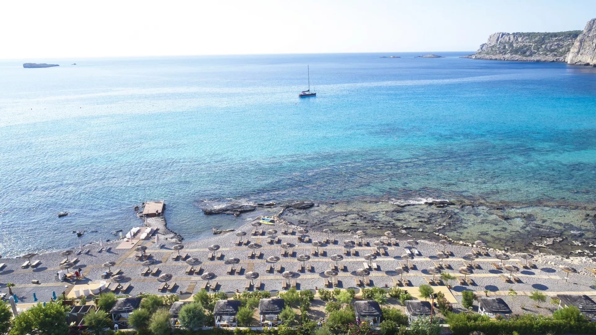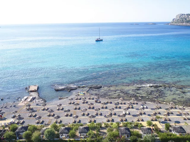 Piesočnato-okruhliaková pláž sa nachádza priamo pri hoteli. Pre vstup do vody sa odporúča obuv. Ležadlá a slnečníky sú na pláži k dispozícii zdarma.