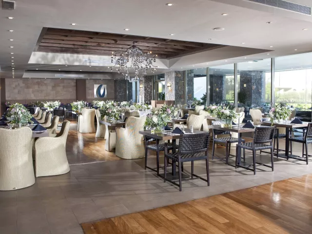 Komplex tvorí hlavná trojpodlažná budova a 7 priľahlých dvojposchodových budov. V hoteli nájdete fitness, saunu, wellness, reštauráciu a reštauráciu á la carte, bary vrátane baru pri pláži, kaderníctvo, práčovňu, čistiareň, konferenčné miestnosti, butik, minigalériu, minimarket a klenotníctvo. Vonku sú k dispozícii 3 bazény s terasou na slnenie, ležadlami, slnečníkmi a osušky zadarmo, ako aj bar pri bazéne.