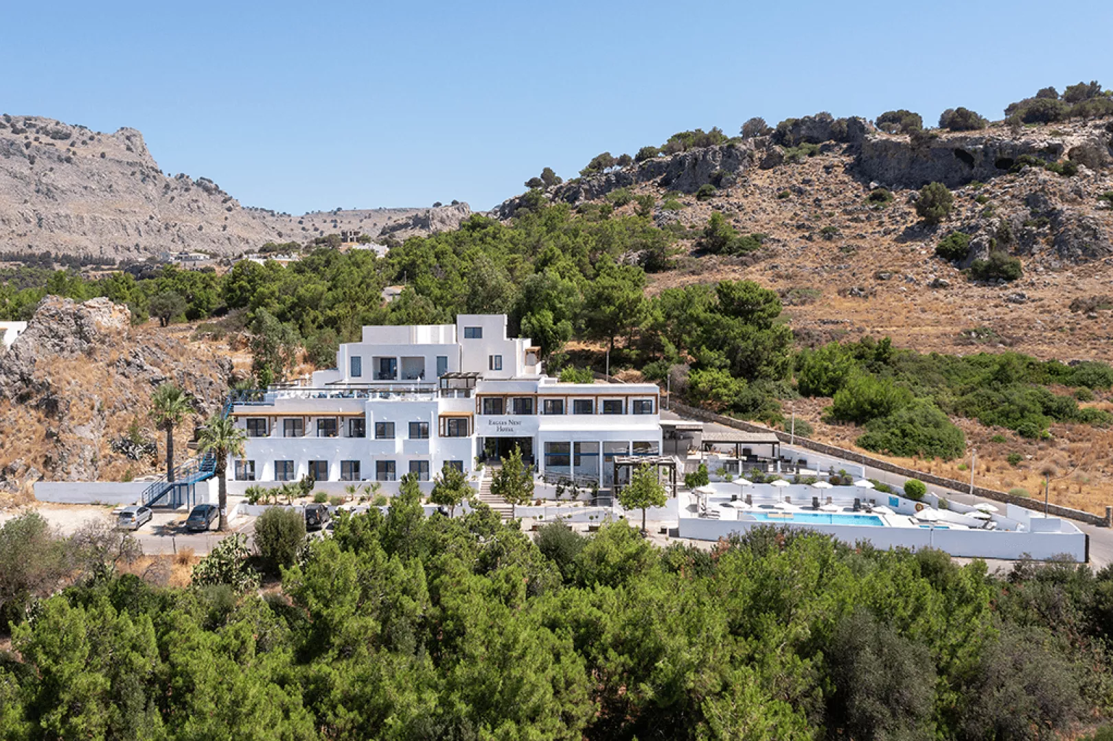 Butikový hotel Eagles Nest sa nachádza v Pefkos, asi 1 km od voľne prístupnej piesočnatej pláže "Pefkos Beach". Do turistického centra to je približne 500 m, pričom mesto Lindos je vzdialené asi 3 km. V blízkosti sú aj supermarkety a reštaurácie. K známych atrakciám, ako je Prassonisi či Old Town na Rody, sa dostanete jednoducho. Mobilitu zabezpečuje aj požičovňa áut, motocyklov, taxi stanovište a autobusová zastávka vo vzdialenosti cca 500 m.
