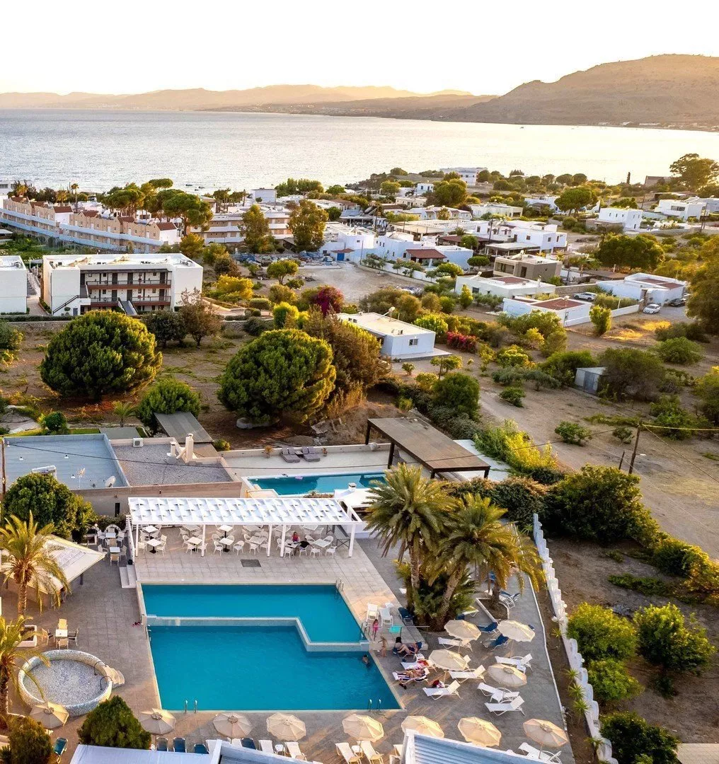 Rodinný rezort sa nachádza v stredisku Pefki, približne 4 km od historického mesta Lindos a 50 km od mesta Rhodos. Faliraki je vzdialený cca 32 km.