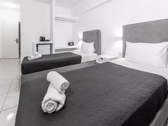 Dvojlôžkové izby sú vybavené vlastným sociálnym zariadením (WC, kúpeľňa, fén), klimatizáciou, televízorom, telefónom, WiFi, mini chladničkou a setom na prípravu kávy a čaju. Izby majú tiež terasu alebo balkón. Rodinné izby sú k dispozícii za príplatok.