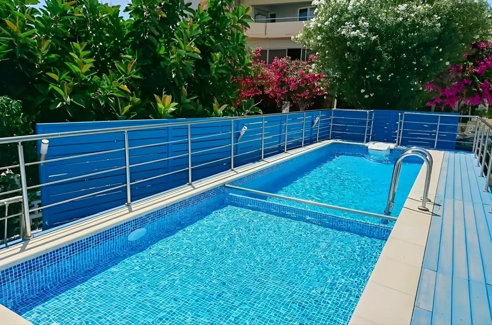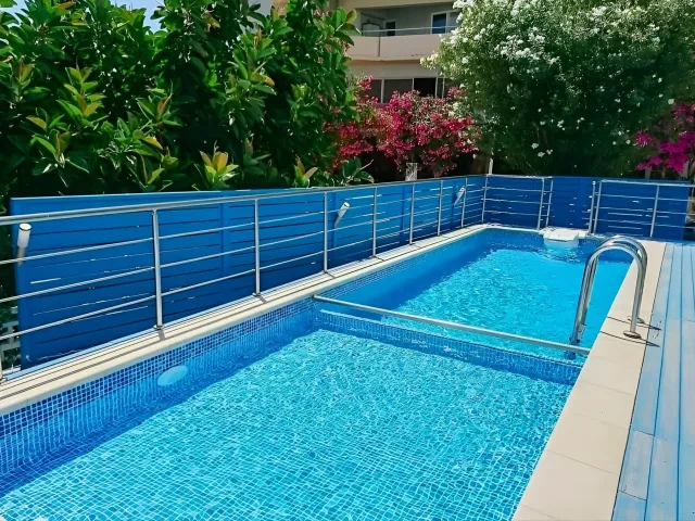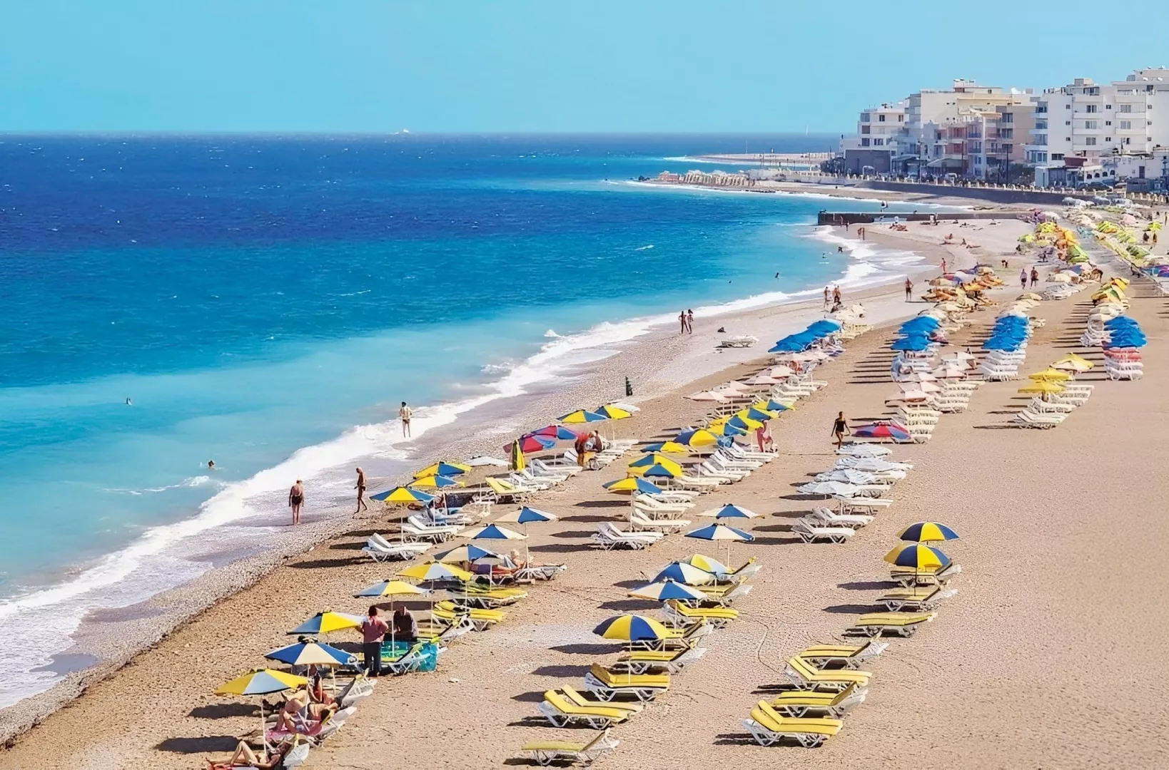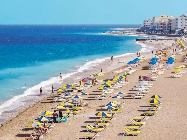 Pláž s hrubým pieskom je vzdialená asi 250 m od hotela, pričom kamienková pláž je dostupná po približne 10 minútovej prechádzke. Na pláži sú ležadlá a slnečníky k dispozícii za poplatok.