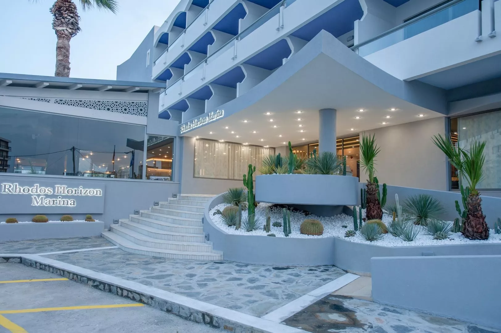 Hotel Rhodos Horizon Marina sa nachádza v hlavnom meste ostrova Rhodos, v blízkosti hotela je niekoľko druhov nákupných možností, autobusová zastávka (asi 50 m od hotela), prístav (asi 300 m od hotela), ako aj množstvo barov, taverien a reštaurácií.