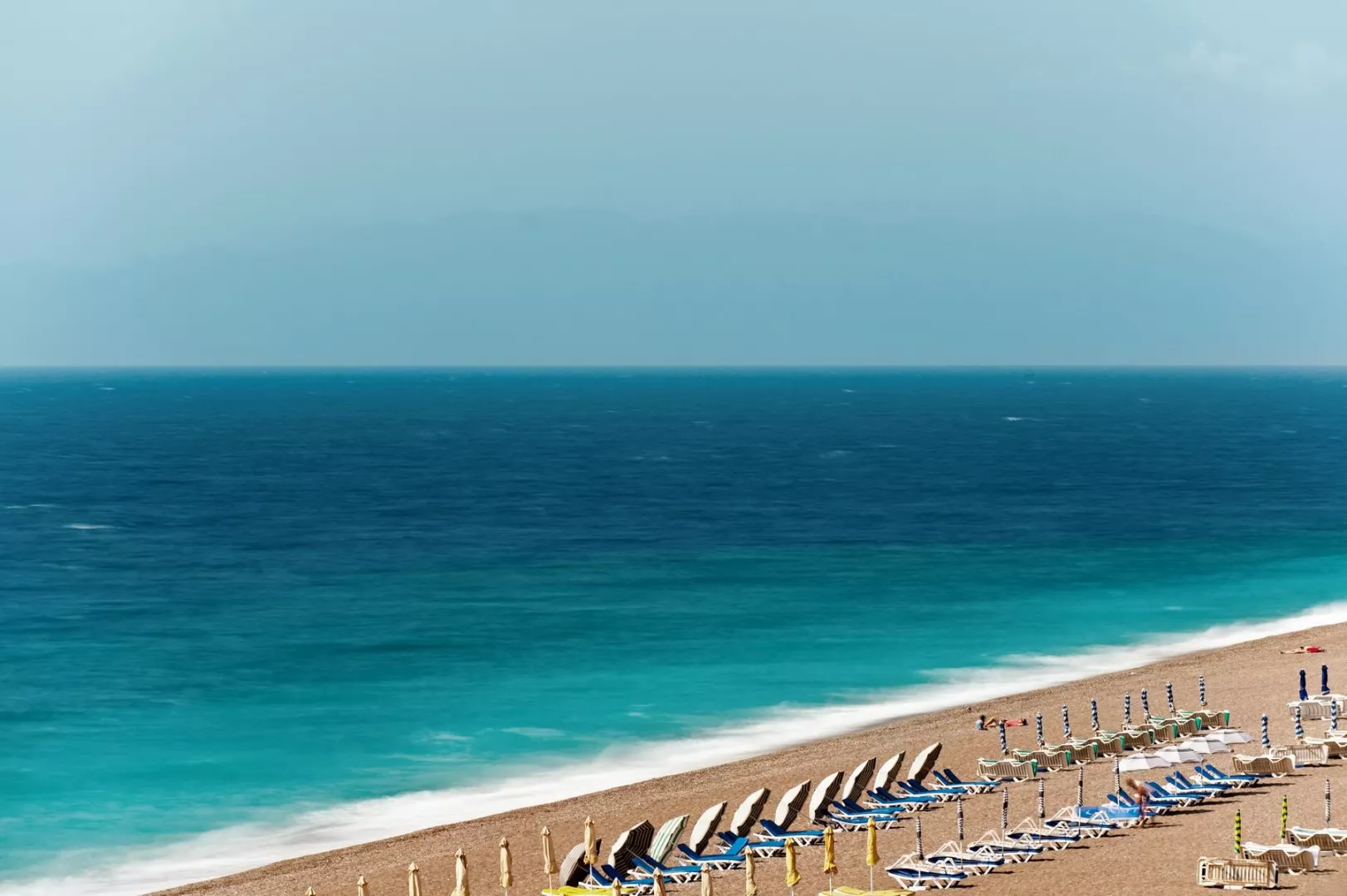 Piesočnatá pláž, prístup cez miestnu komunikáciu, ležadlá a slnečníky (za poplatok).