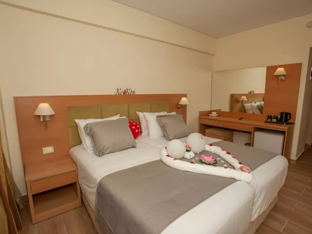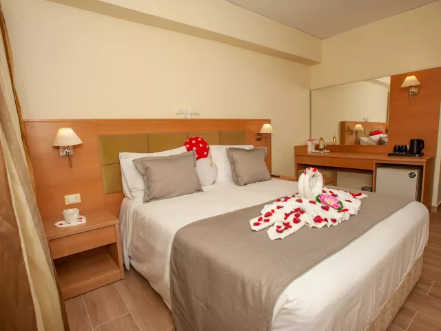 Dvojlôžková izba: centrálna klimatizácia (zadarmo), TV so satelitným príjmom, telefón, vlastné sociálne zariadenie (kúpeľňa, sušič vlasov, WC), trezor (za poplatok), minibar (za poplatok), set na prípravu kávy a čaju, balkón alebo terasa. Dvojlôžková izba s výhľadom na more: rovnaké vybavenie ako štandardná izba, výhľad na more