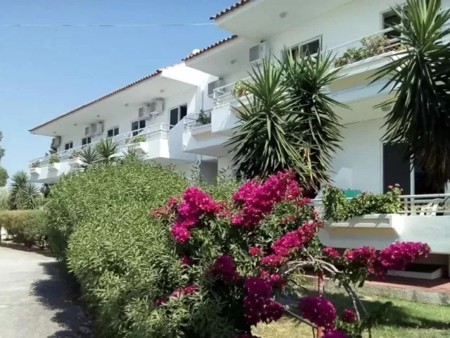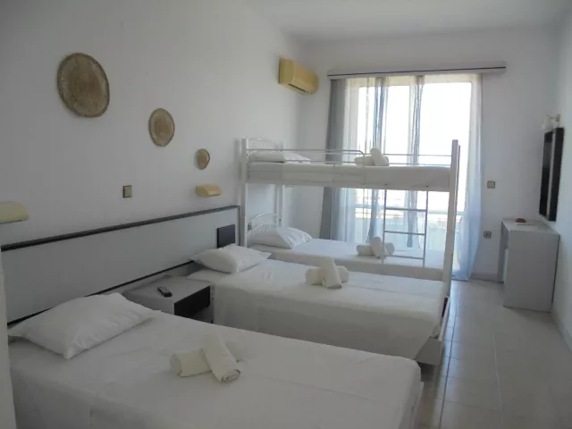 Menší hotel Asterias Bay sa nachádza cca 500 m od strediska Theologos, ktoré ponúka niekoľko taverien a obchodíkov. Centrum letoviska je vzdialené len 0,5 km. Hlavné mesto Rhodos je vzdialené približne 20 km. Kamienková pláž leží cca 200 m od hotela, kedy je prístup cez miestnu komunikáciu.