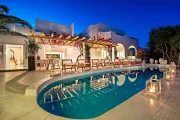 Luxusný hotel v Kamari na Santorini s priamym prístupom na pláž a bohatým vybavením. Ideálny pre relaxáciu a vodné športy.