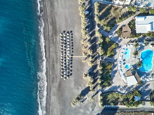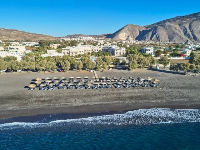 Hotel sa nachádza v letovisku Perissa, približne 200 m od centra, ktoré ponúka množstvo reštaurácií, barov a možností na nákup. Mesto Fira je vzdialené asi 12 km a medzinárodné letisko Santorini je vzdialené približne 14 km. Autobusová zastávka je v blízkosti hotela.