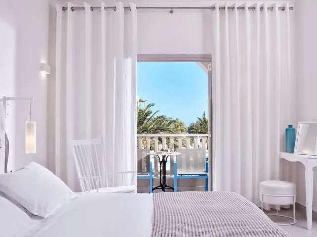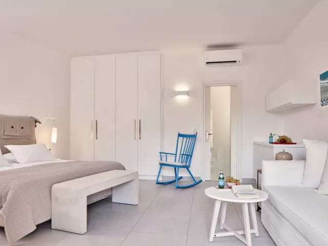 Dvojlôžkové izby s možnosťou 1 prístelky majú vlastné zariadenie (kúpeľňa so sprchou, fénom, WC), klimatizáciu, SAT/TV, telefón, rádio, mini chladničku, Wi-Fi, trezor a balkón alebo terasu. Štúdio pre 3 dospelých a 1 dieťa je vybavené plne vybaveným kuchynským kútom.