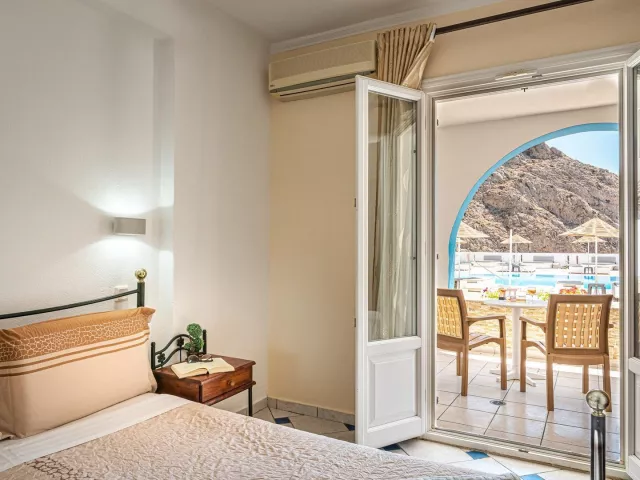 Rodinný hotel Marianna Hotel sa nachádza v letovisku Perissa, len 500 m od centra s reštauráciami, barami a obchodmi. Mesto Fira je vzdialené približne 10 km, zatiaľ čo autobusová zastávka je neďaleko hotela (asi 400 m). Medzinárodné letisko Santorini je od hotela vzdialené približne 13 km.