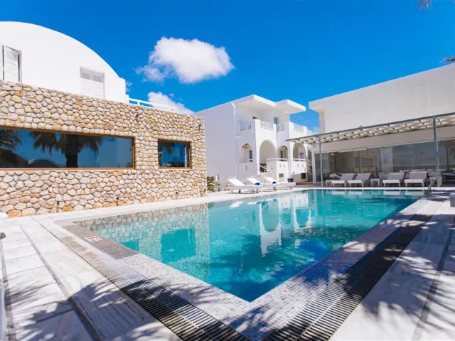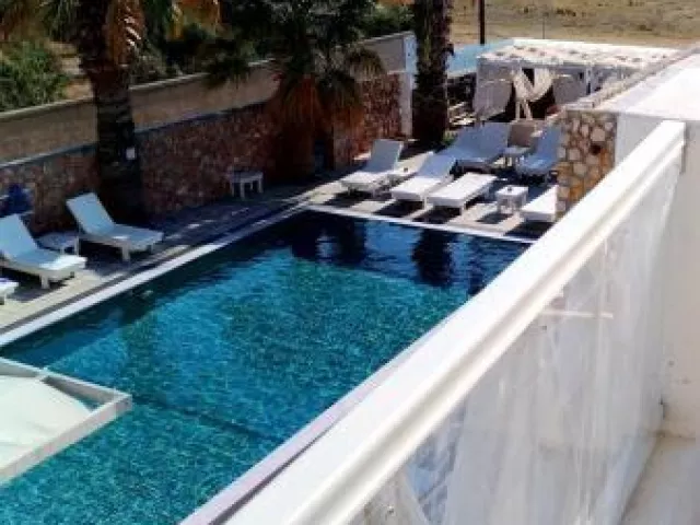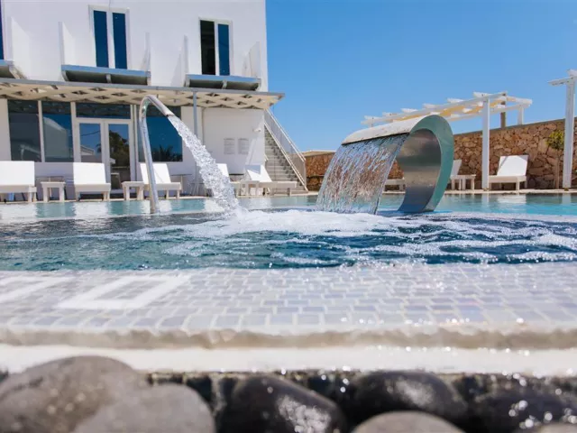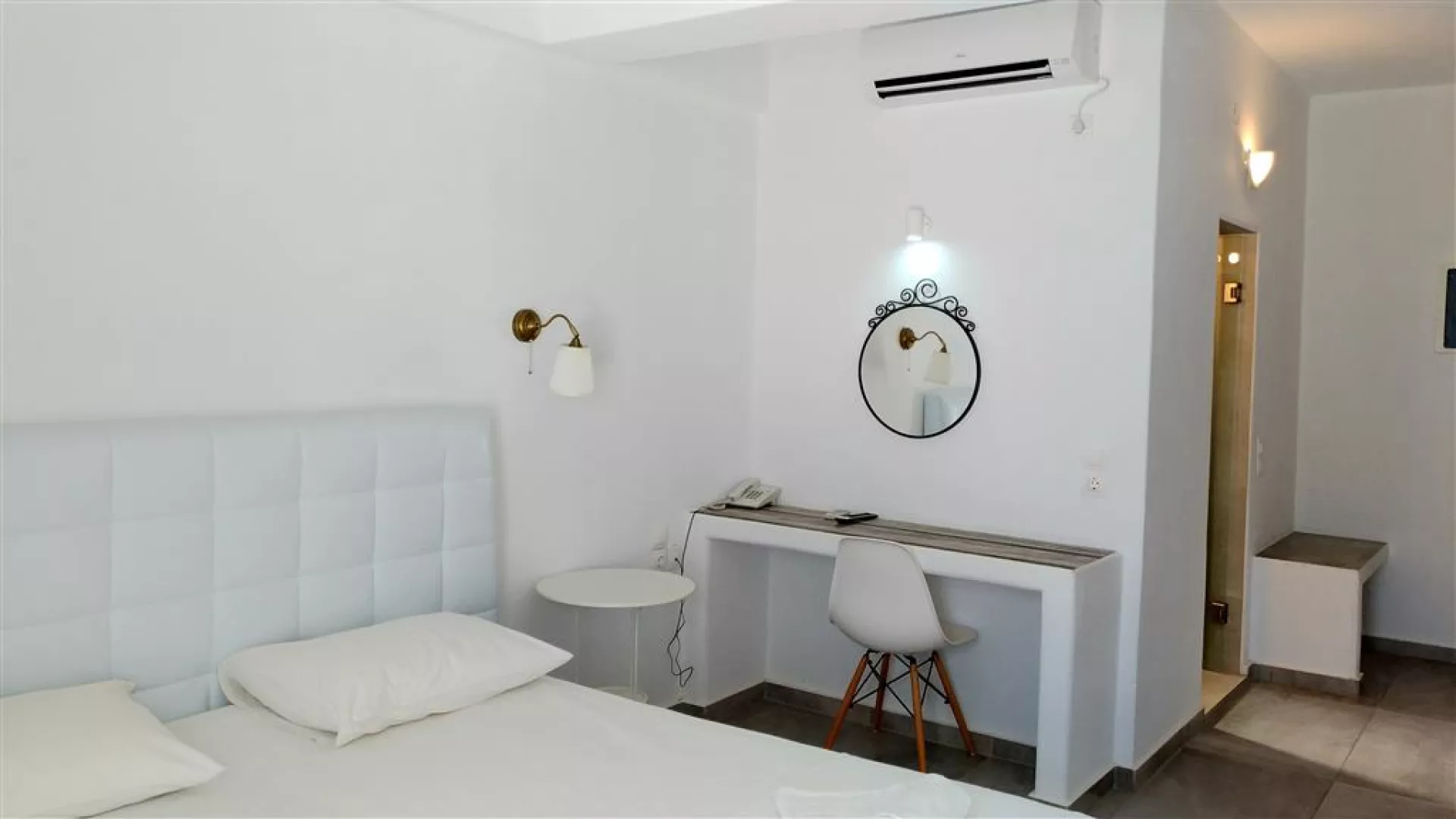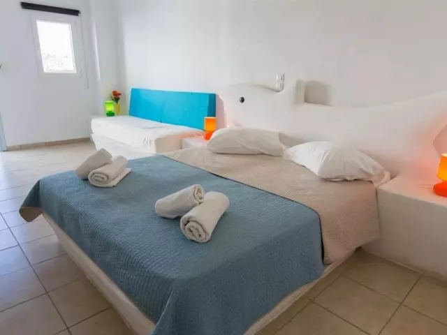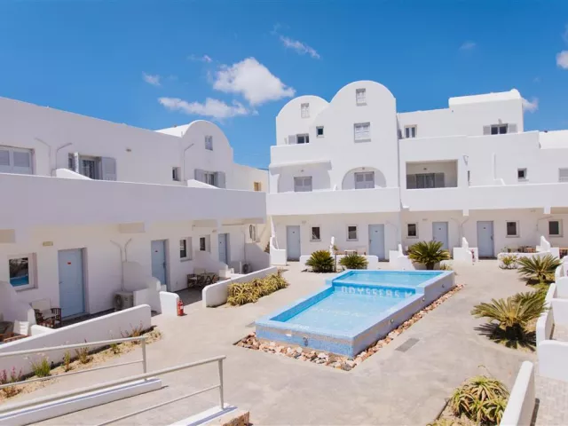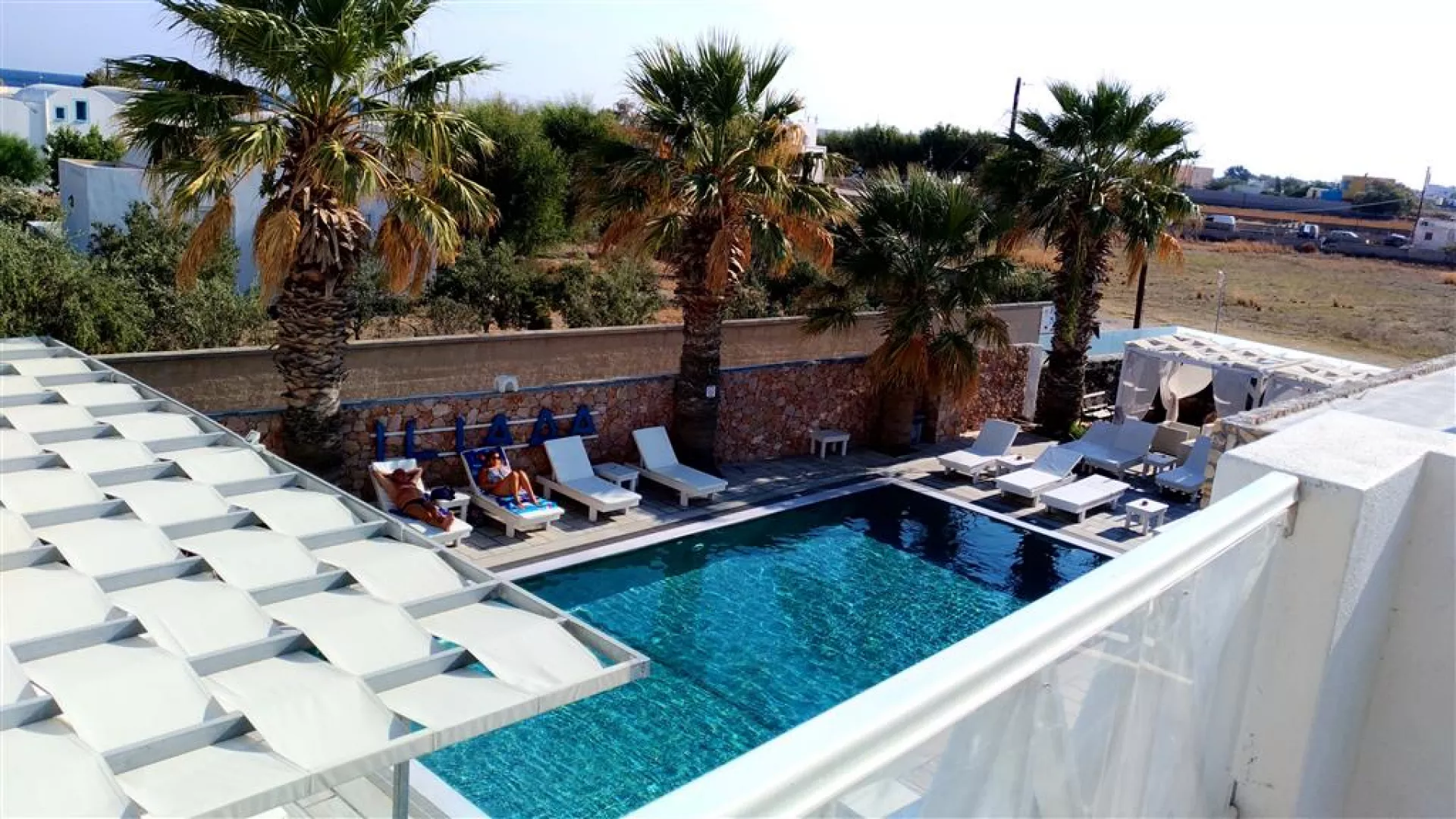 Rodinný hotel postavený v typickom kykladskom štýle blízko príjemnej pláže Perivolos s čiernym vulkanickým pieskom uspokojí stredne náročného klienta aj rodiny s deťmi.