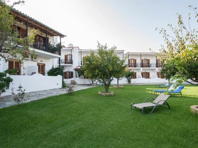 Piesočnatá pláž Achladies s pozvoľným vstupom do mora je vzdialená približne 50 m od ubytovania. Na pláži je možné prenajať ležadlá a slnečníky za príplatok.