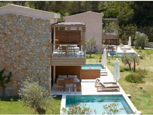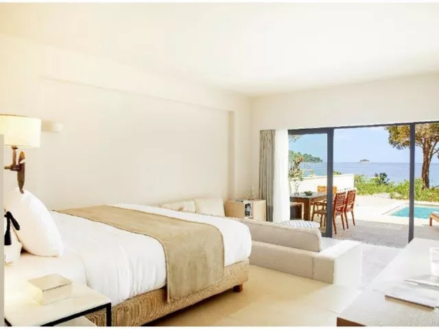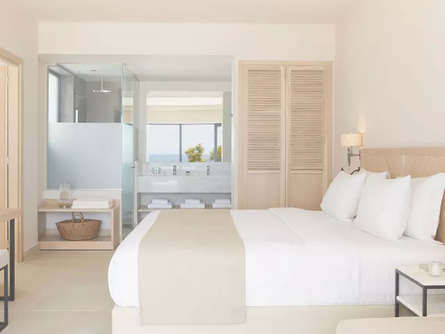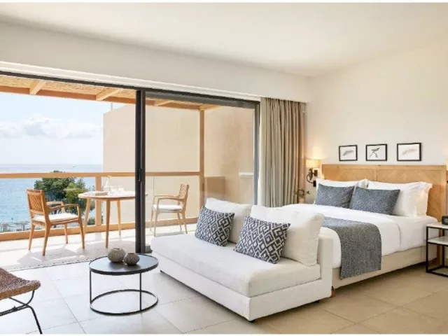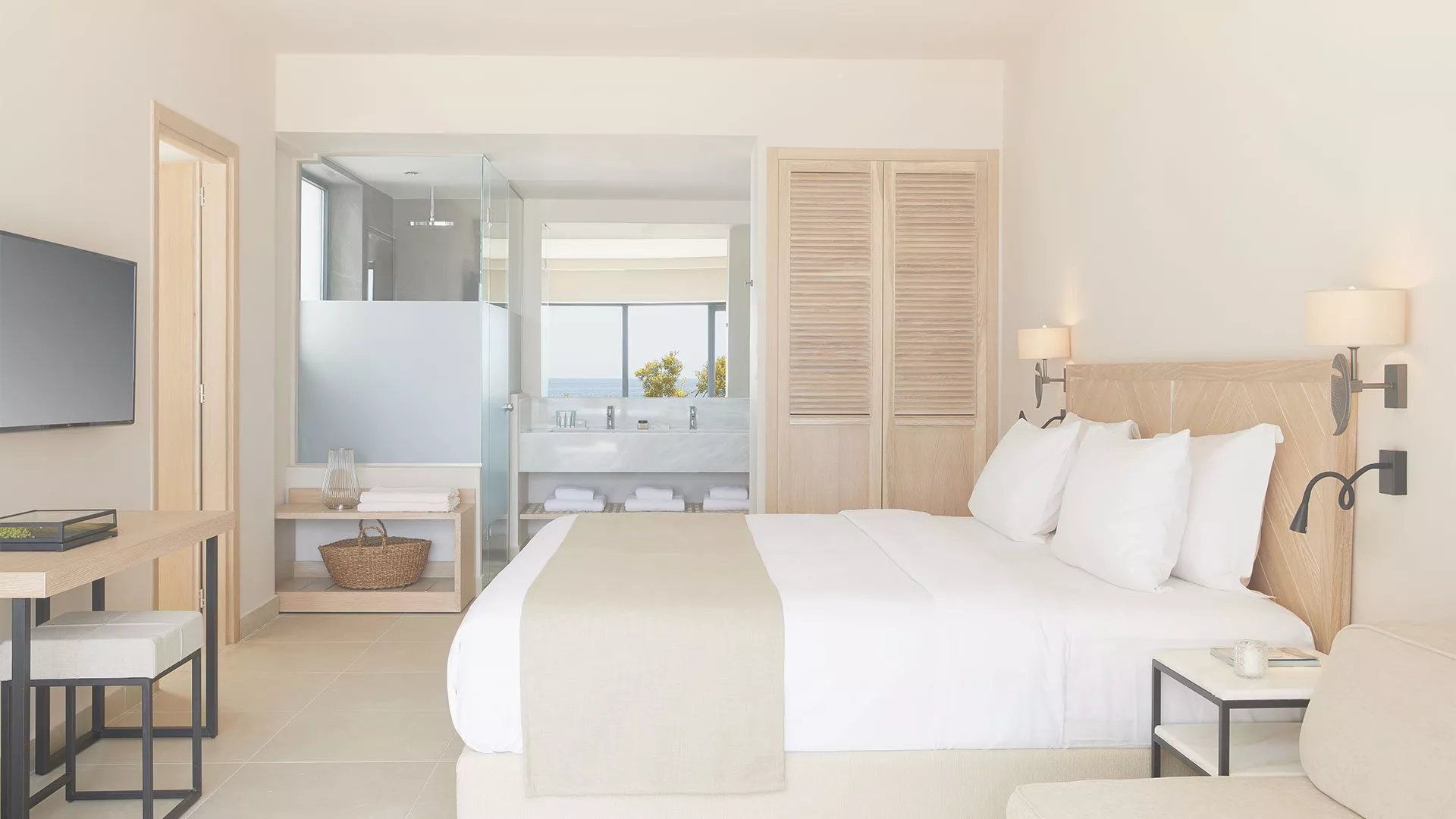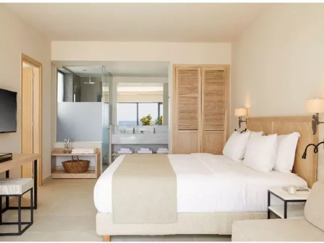 Izby sú klimatizované a vybavené zariadením na prípravu kávy a čaju, trezorom, Wi-Fi a TV. Izby rôznych typov poskytujú rozmanité možnosti, ako Double Xenia, Junior Suite Hot Tub s terasou a vírivkou, Beachfront Suite s bazénom a ďalšie.