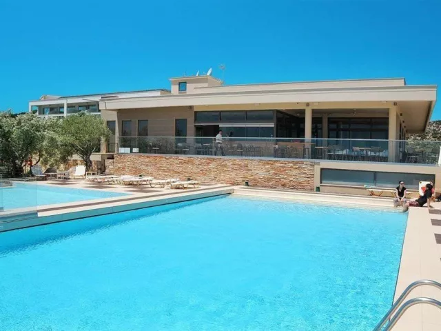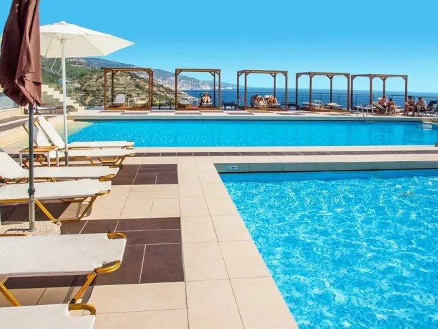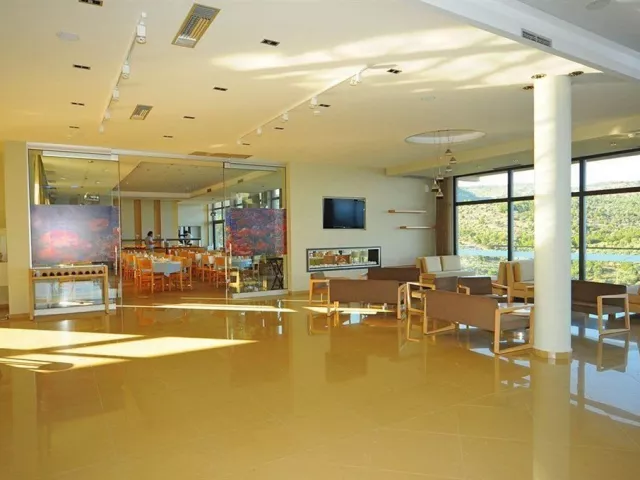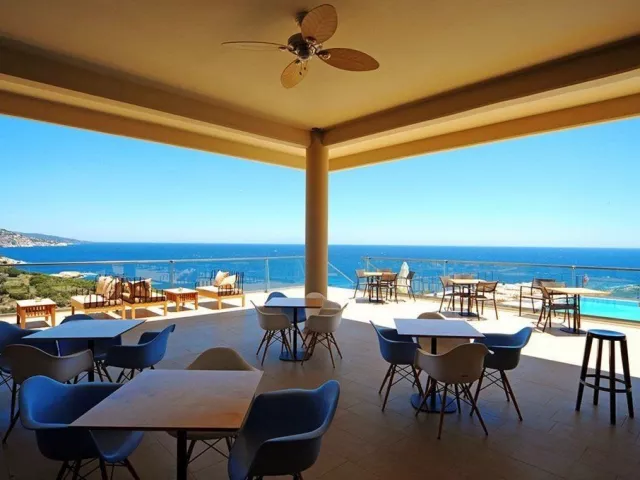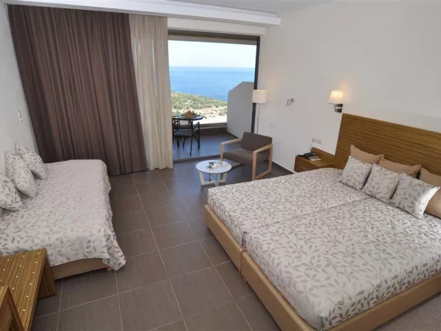 Moderný hotel sa nachádza na útese nad morom a ponúka výhľad na záliv a menšiu prírodnú pláž. Hotel je vzdialený približne 50 km od hlavného mesta Limenas a asi 8 km od mestečka Potos. Najbližšia autobusová zastávka je cca 100 m od hotelu.