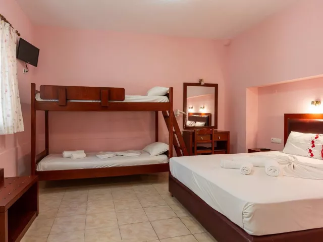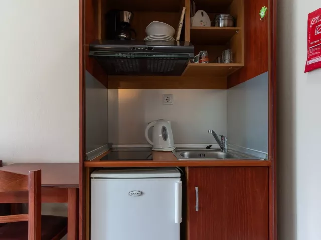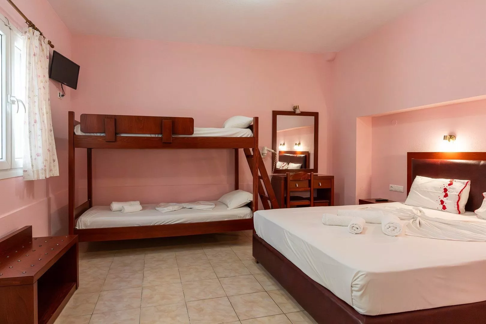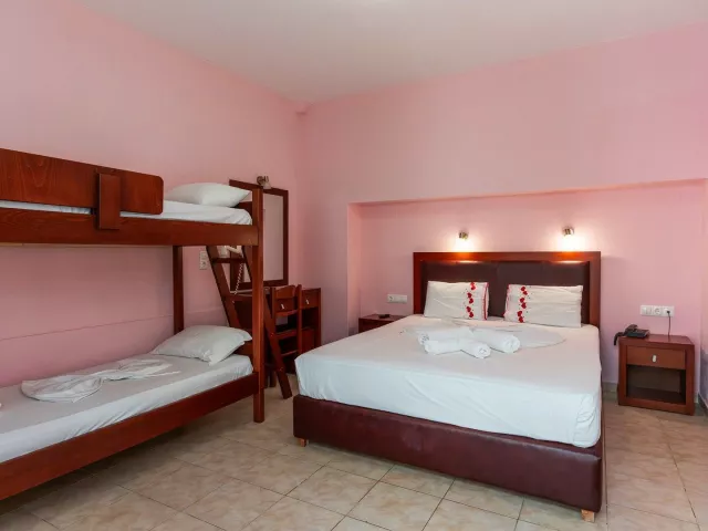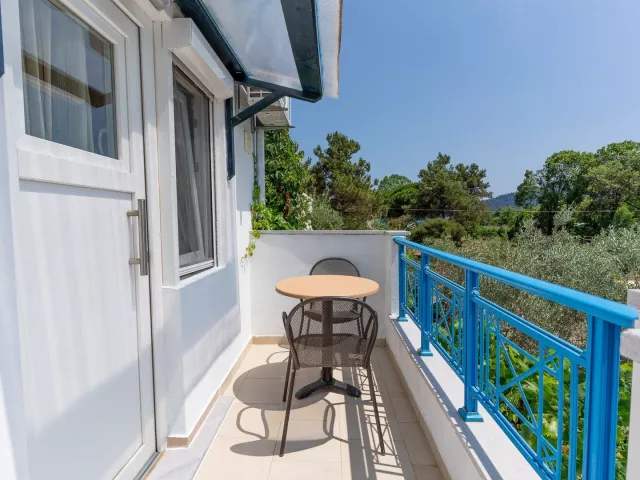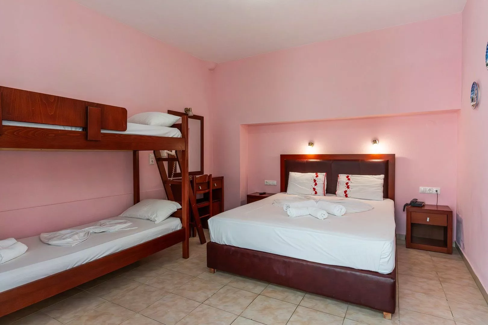 Hotel má štúdiá s výhľadom na bazén, dvojlôžkové izby a štúdiá s možnosťou prístelky. Vybavenie izieb zahŕňa WC, sprchu, fén, klimatizáciu, WiFi, chladničku, kuchynské vybavenie, TV a balkón alebo terasu.